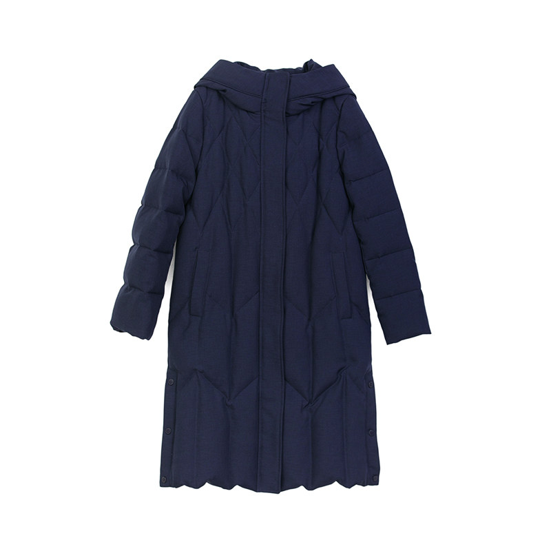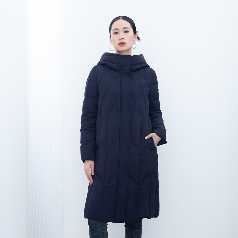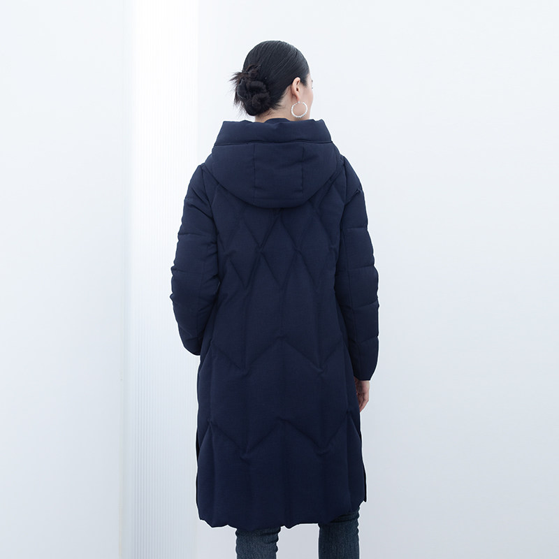 诗梦藏青色中长羽绒服瑕疵