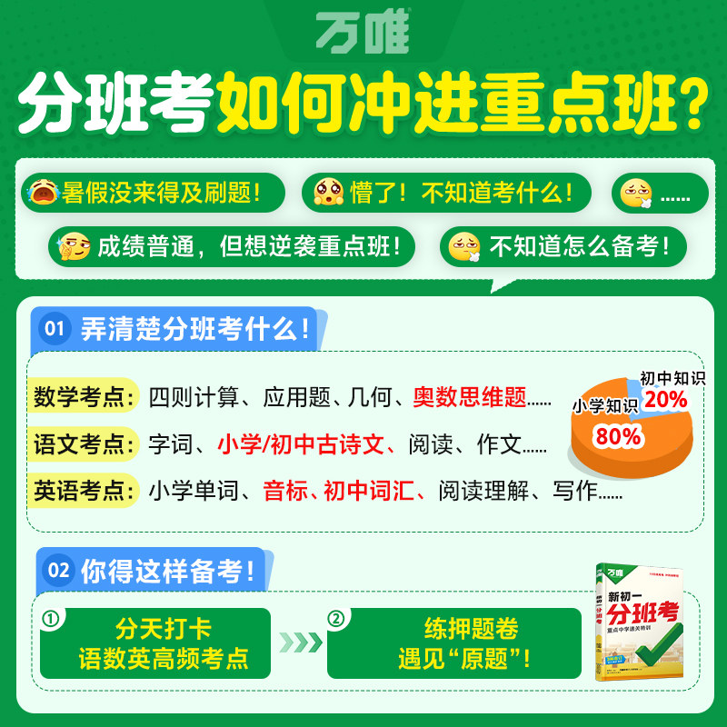 📚 2026新书万唯中考新初一分班考小学毕业衔接初中入学测验暑假作业预科必刷题语文数学英语一本全套实验班学霸提优神器训练试卷