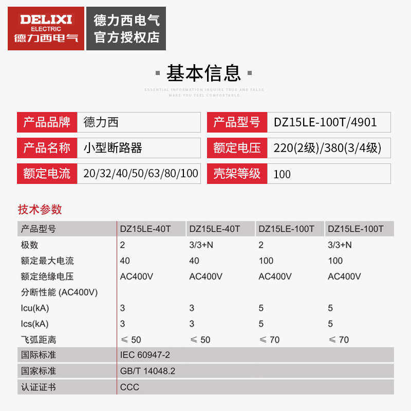 📚 DZ15LE-100T/4901透明断路器带漏电保护4P63A空气开关漏保