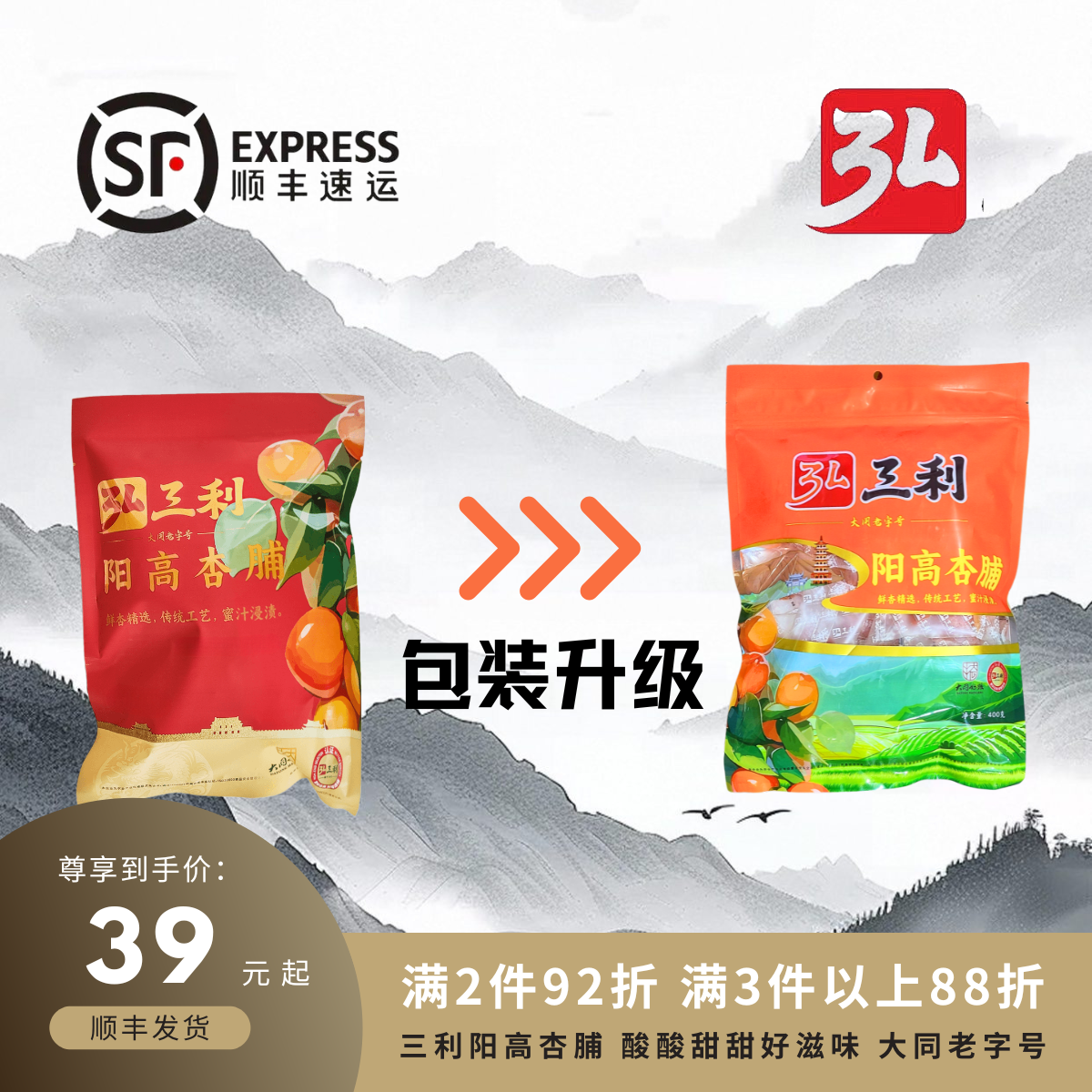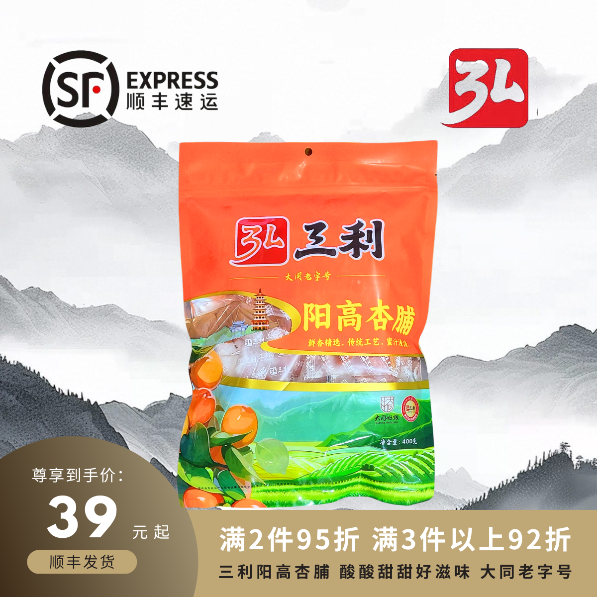 📚 顺丰发货山西特产大同老字号弘三利阳高杏脯独立包装400g袋装杏干