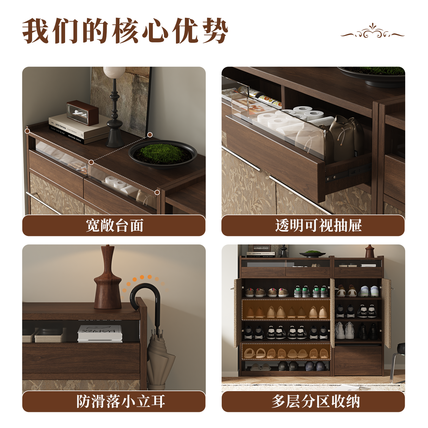 📚 实木鞋柜中古风家用入户门口新型爆款大容量一体靠墙收纳柜定制
