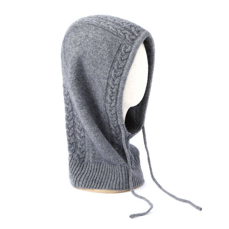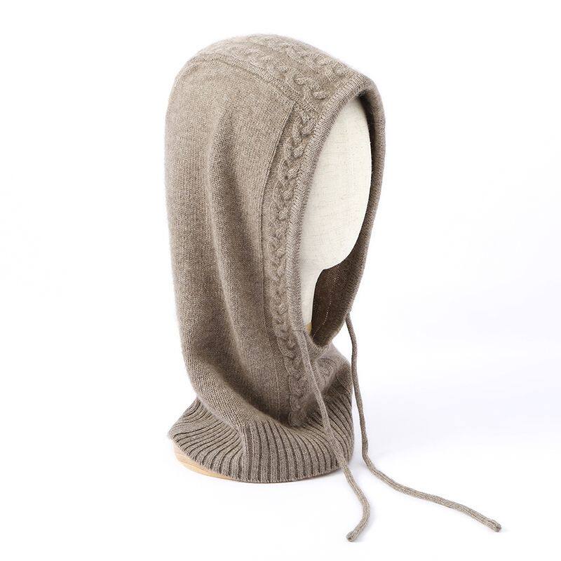 📚 秋冬100%纯羊毛围巾帽子女巴拉克法帽围脖一体包头护耳针织假领子