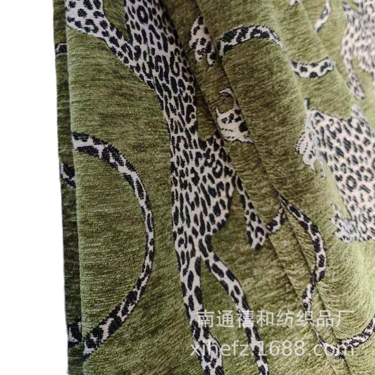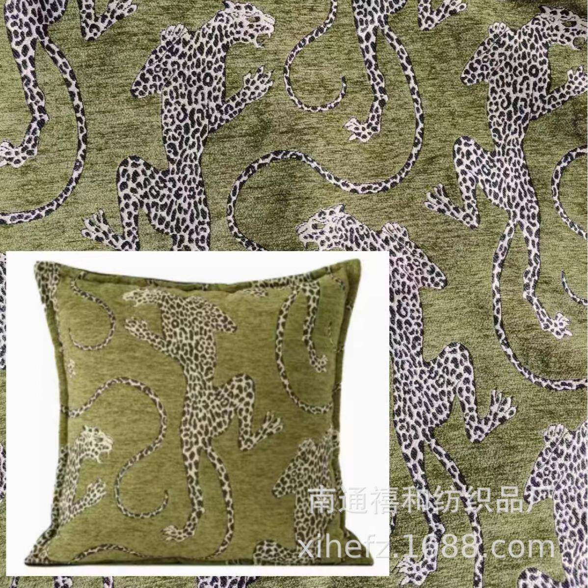 📚 高端轻奢复古动物绿色豹子图案面料可做抱枕做沙发布盖毯子窗帘
