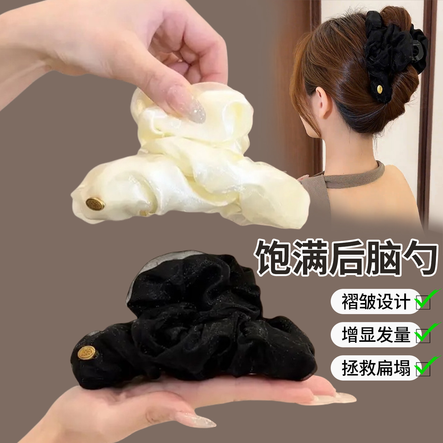 📚 拯救扁塌头型抓夹饱满后脑勺流光网纱褶皱2025新款高级感发夹女