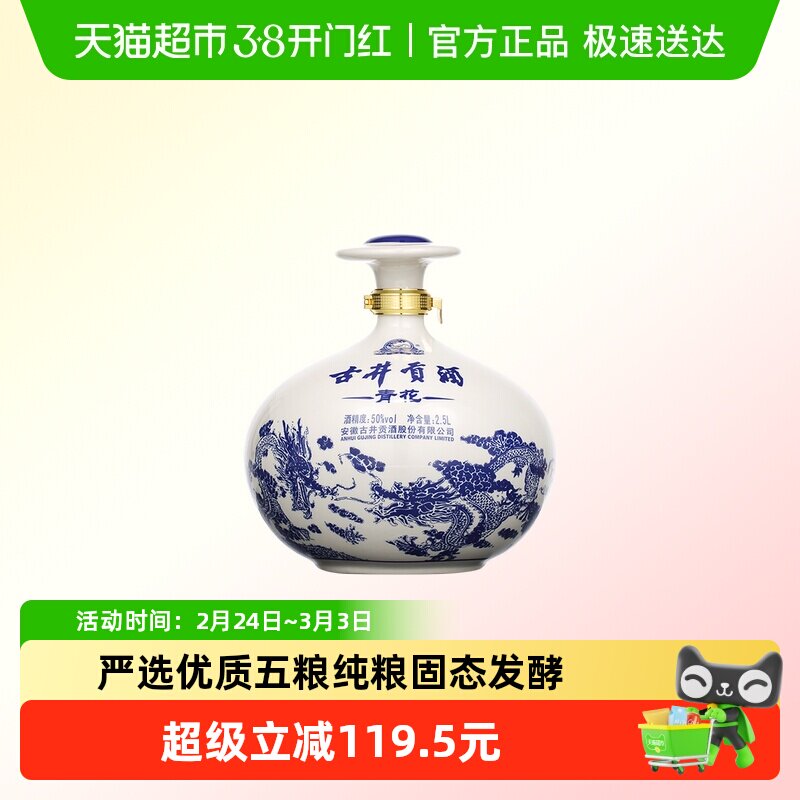📚 古井贡酒浓香型白酒青花大坛50度2500ml坛装5斤纯粮食酒
