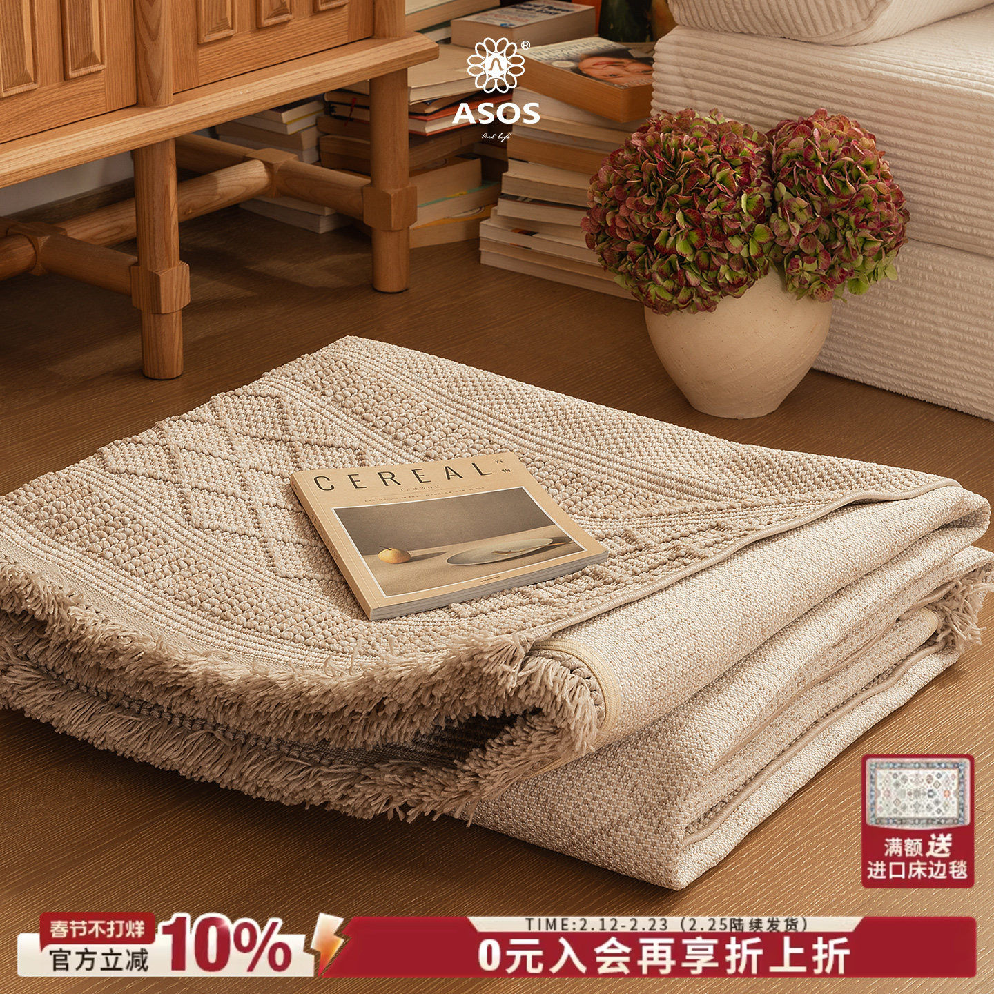 📚 【独家易收纳可折叠系列】ASOS原装进口原木奶油风编织极简地毯
