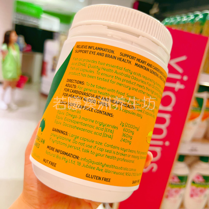 📚 澳洲原装进口QUALITY HEALTHS深海鱼油胶囊2000mg*200粒高含量