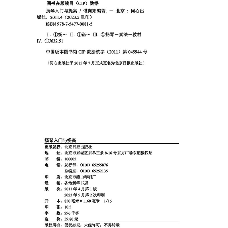 📚 扬琴入门与提高 民乐乐器演奏初学教程 弦乐弹奏经典曲目解析书籍 同心出版社从零起步基础书籍 简谱 入门与提高系列 扬琴教学