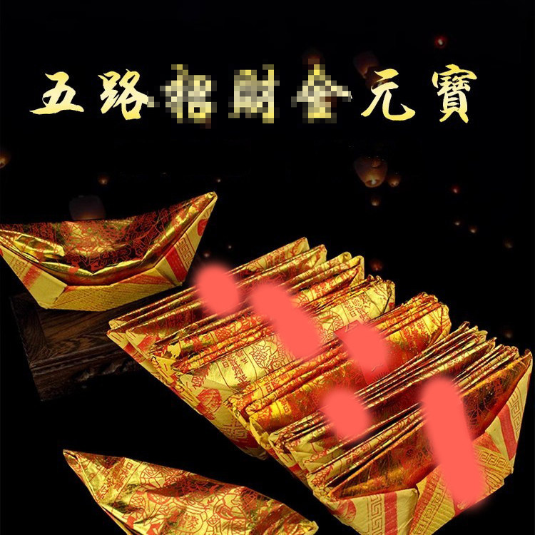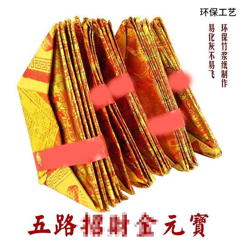 📚 五路折纸金元宝清明节拜祖烧纸潮汕纸钱锡箔叠元宝纸金箔5包150个