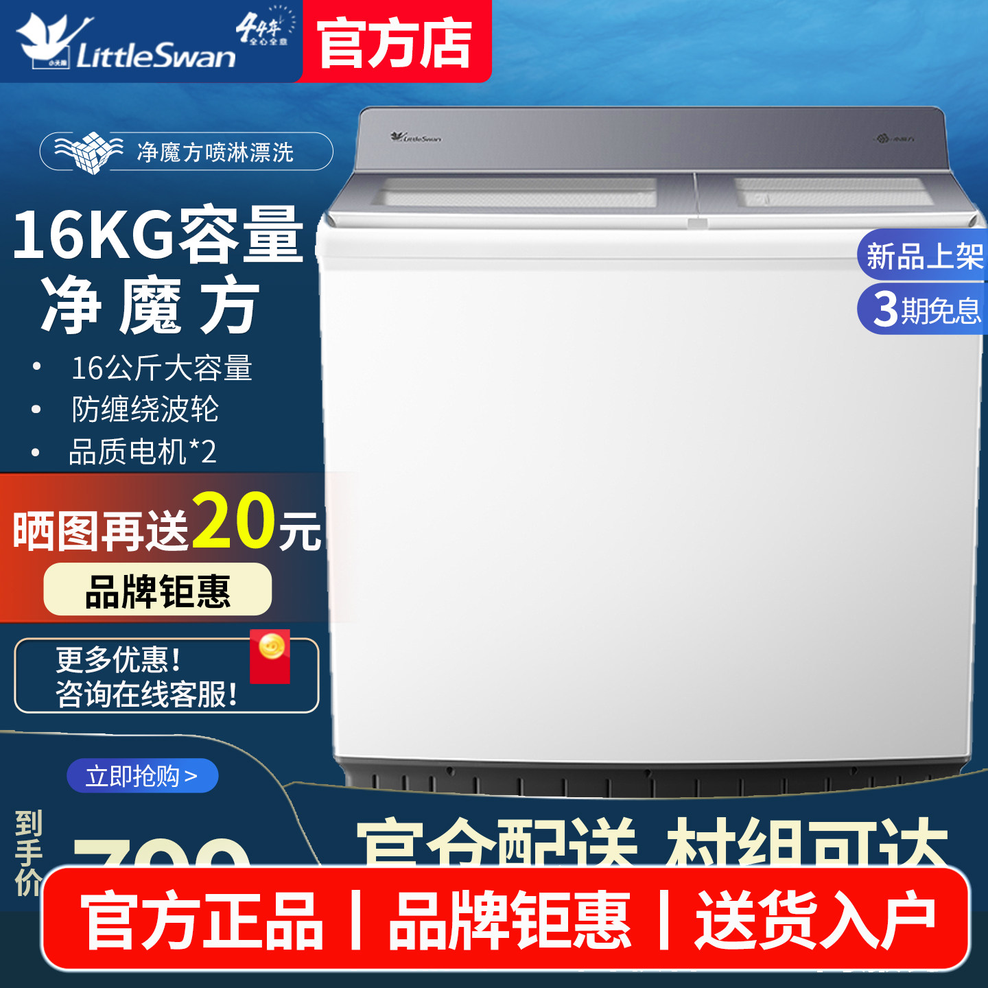 17¥ MF278 ulNnUE4fQ3w¥ https://m.tb.cn/h.i34DxF0 小天鹅半自动洗衣机12/16/20公斤家用双桶双缸大容量老式波轮双筒 --------------------- 【原售价】1,369元 【现售价】1,399元。