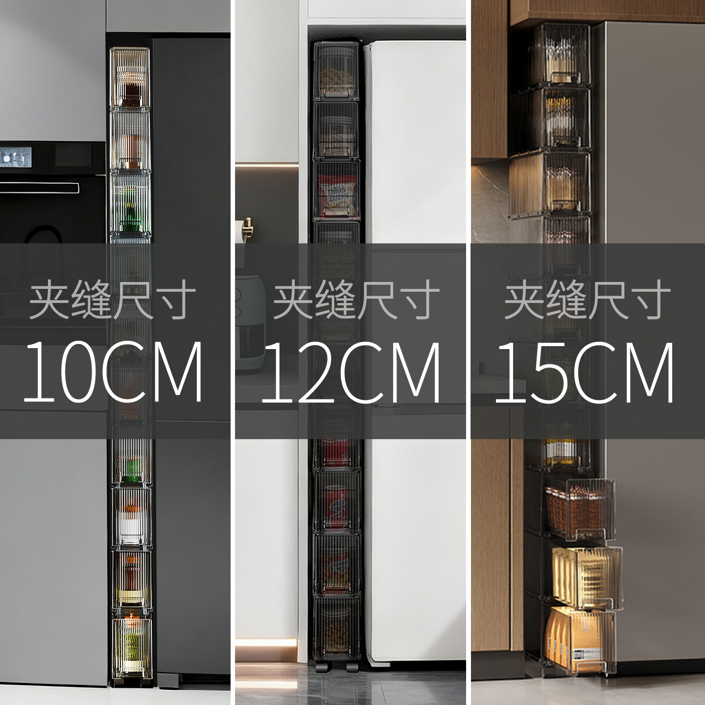 📚 10CM/15CM夹缝抽屉式收纳柜宽厨房冰箱缝隙超窄柜子浴室边缝带轮