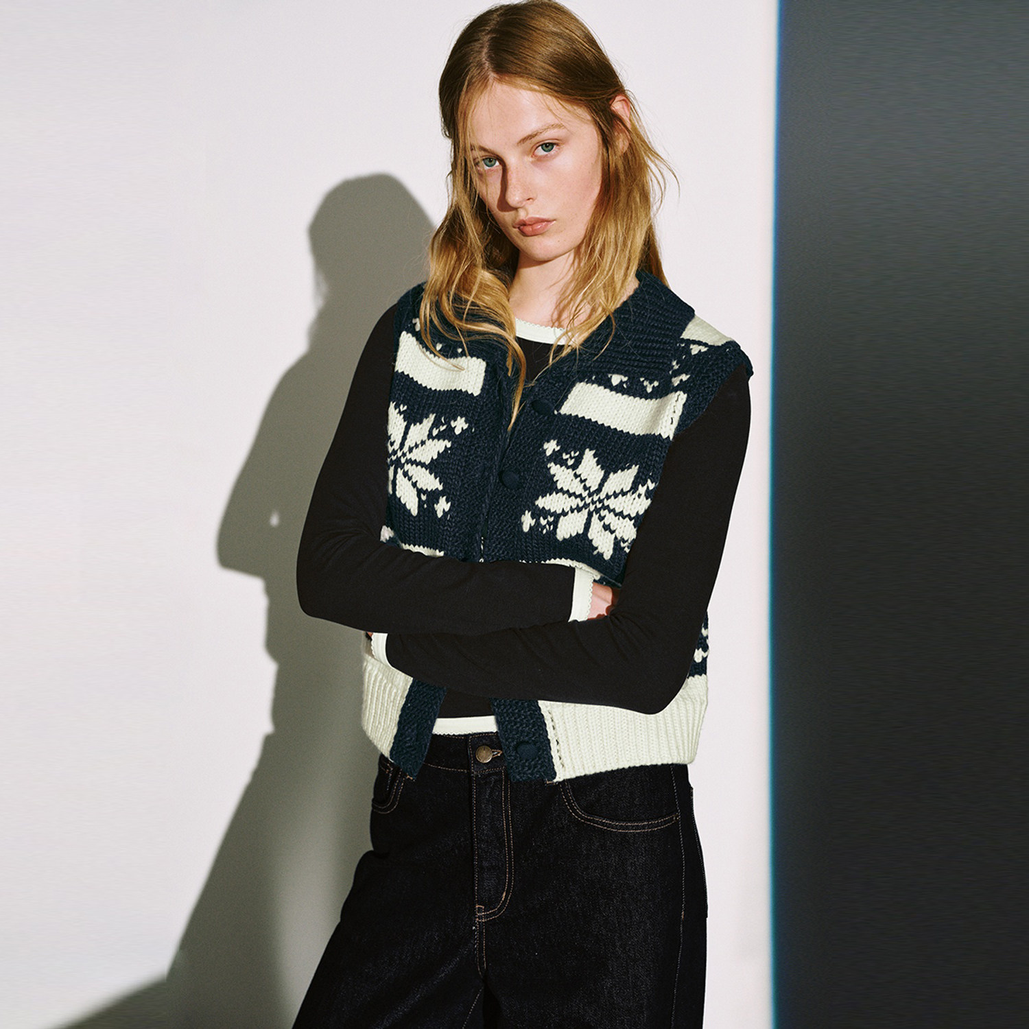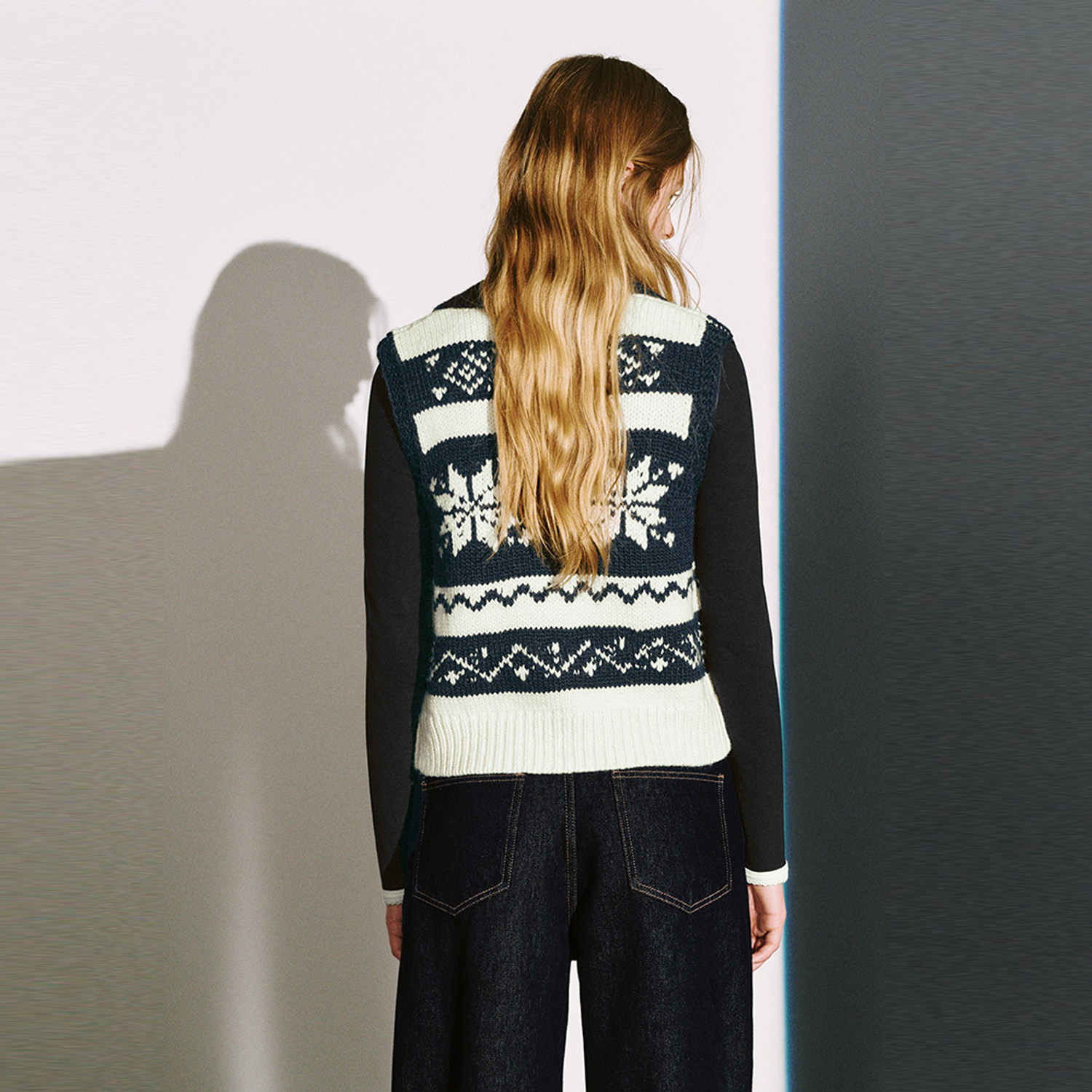 📚 UR国内代购2025冬季女装休闲费尔岛短款马甲针织开衫UYL950272
