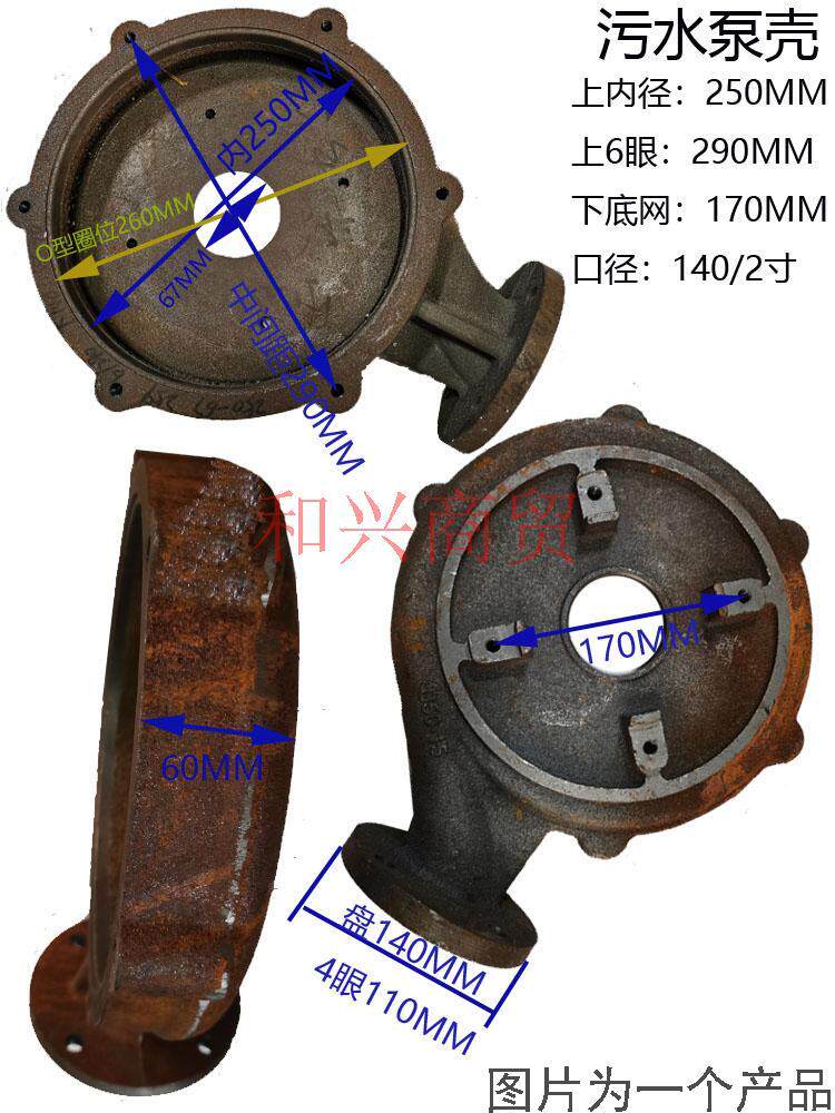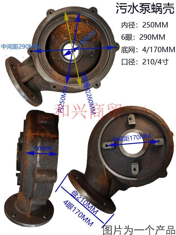 📚 潜水泵配件100WQ-15/22KW新款进越水泵内250蜗壳铁叶轮底座中间盖