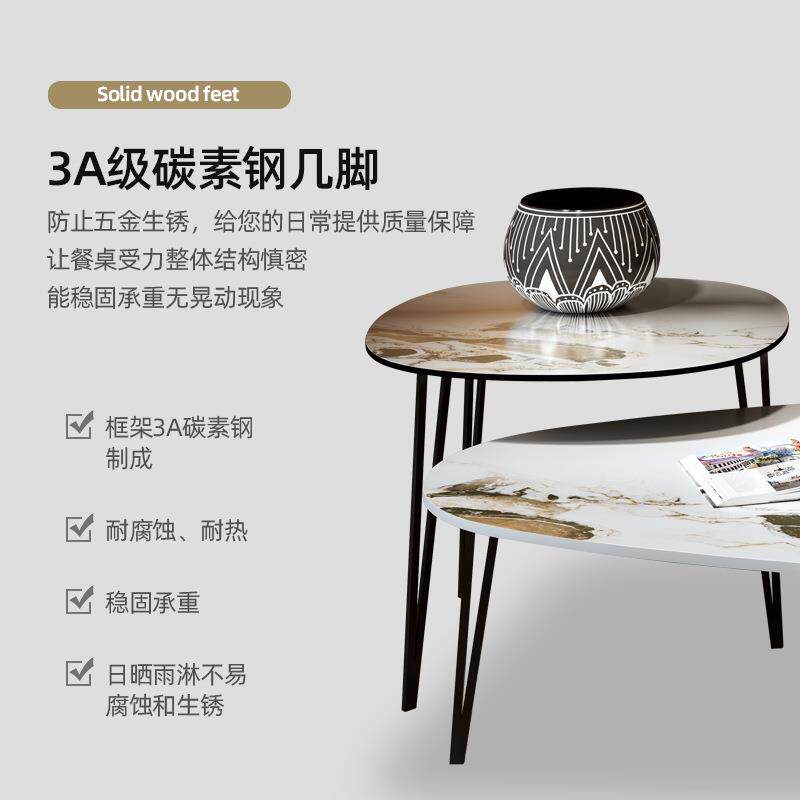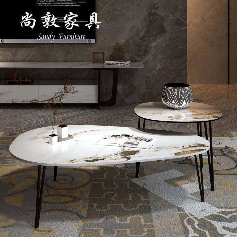 📚 尚敦丨轻奢岩板茶几大小组合简约现代椭圆意式北欧客厅边几小户型