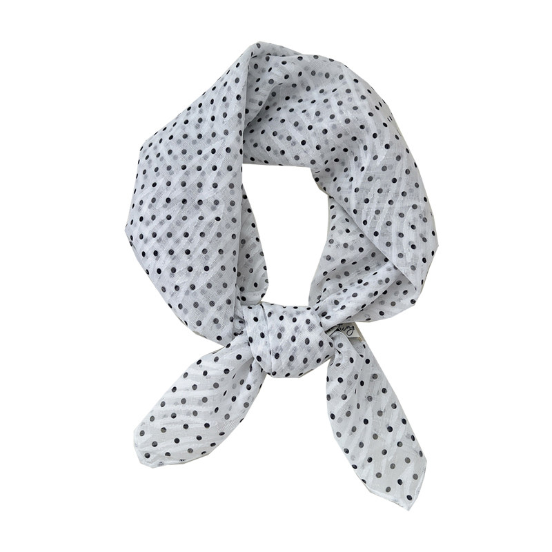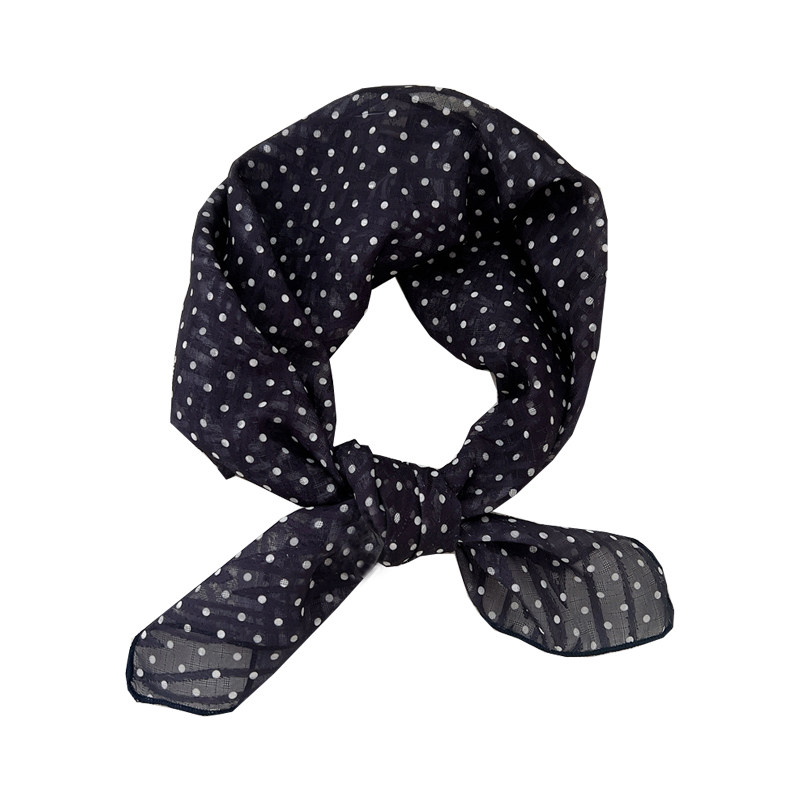 📚 丝巾小方巾女法式黑色小波点腰带护颈围巾 搭配衬衫的ins头巾发带