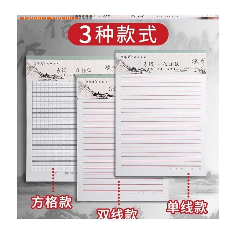 📚 信纸本信封套装简约写书学生用方格信稿纸横线作文纸400格
