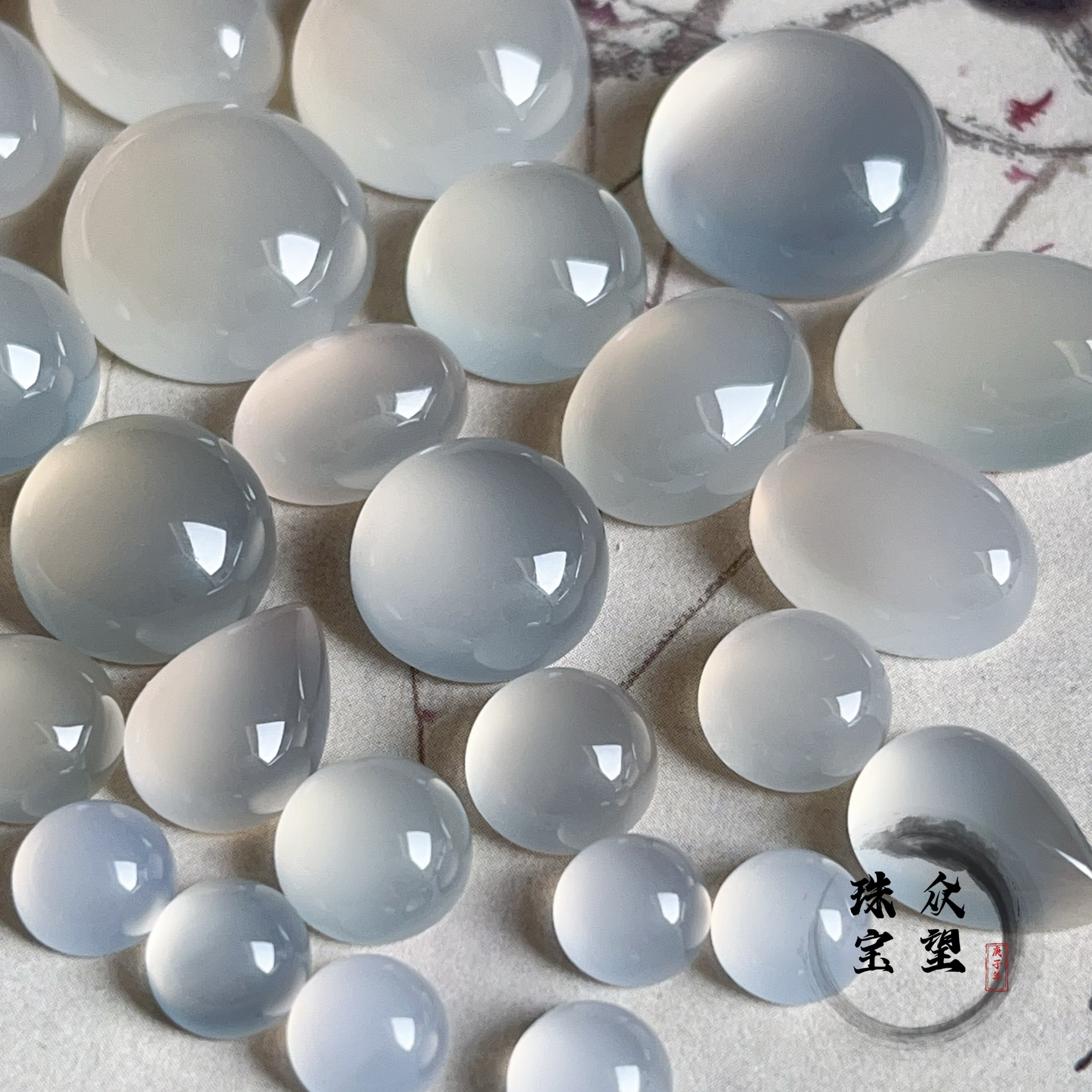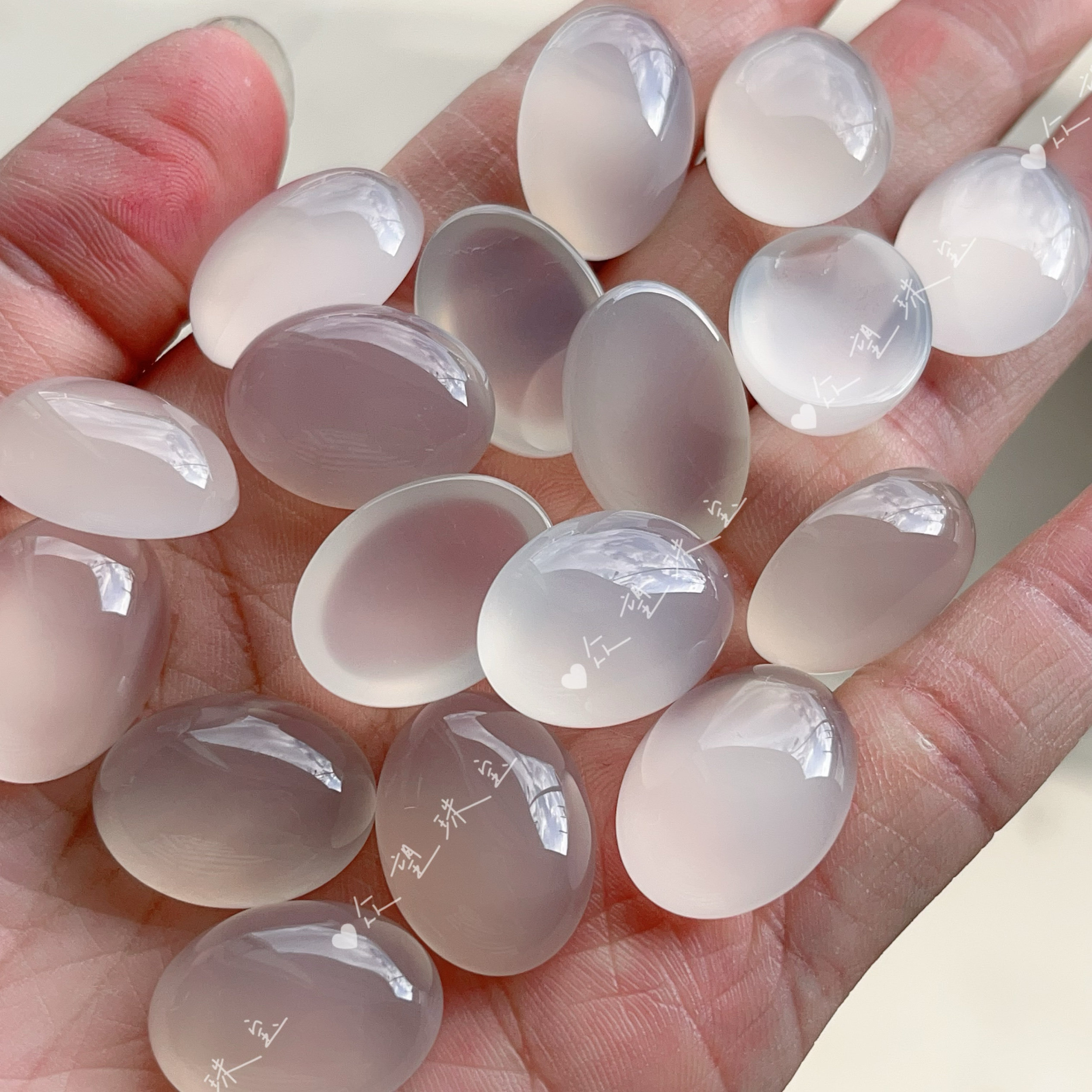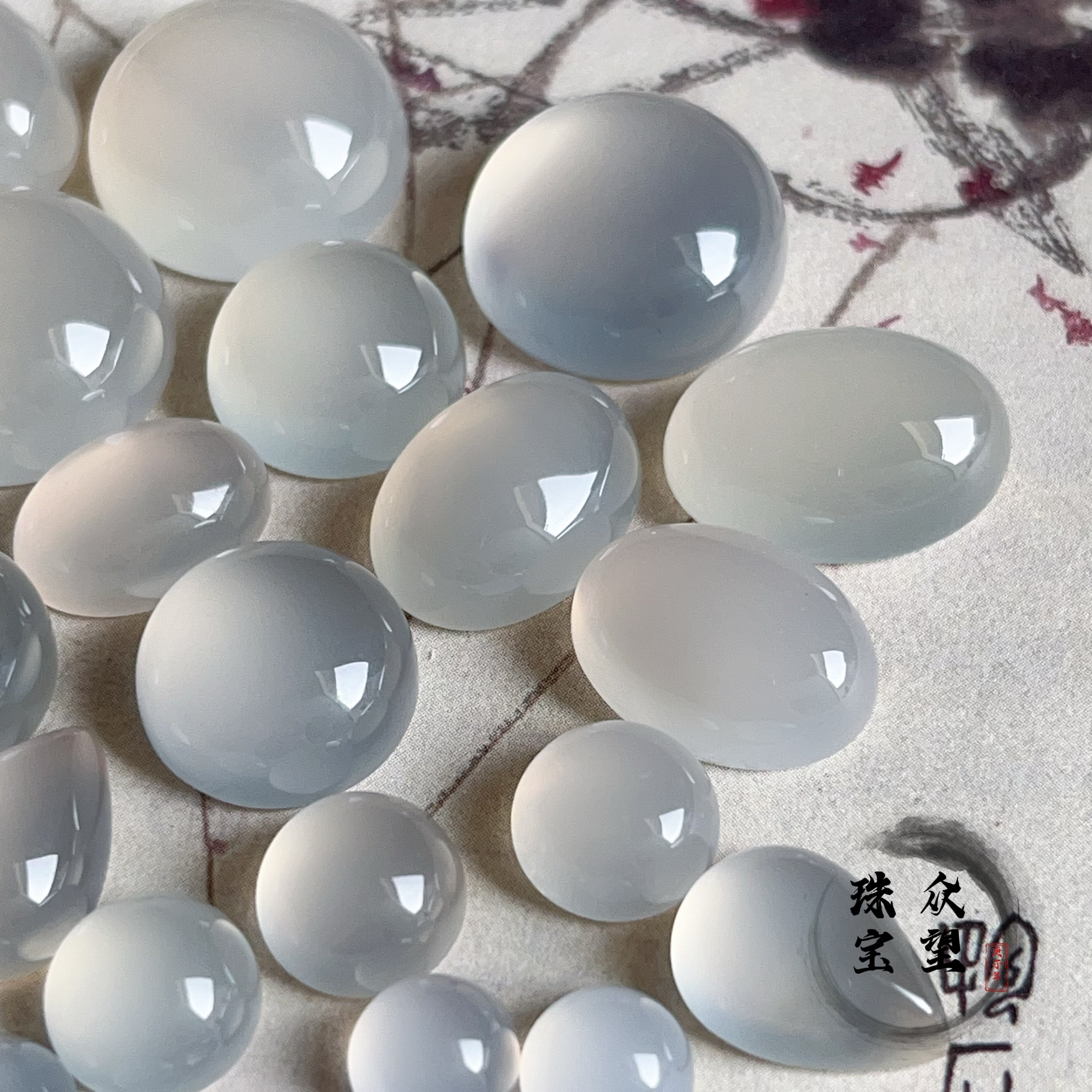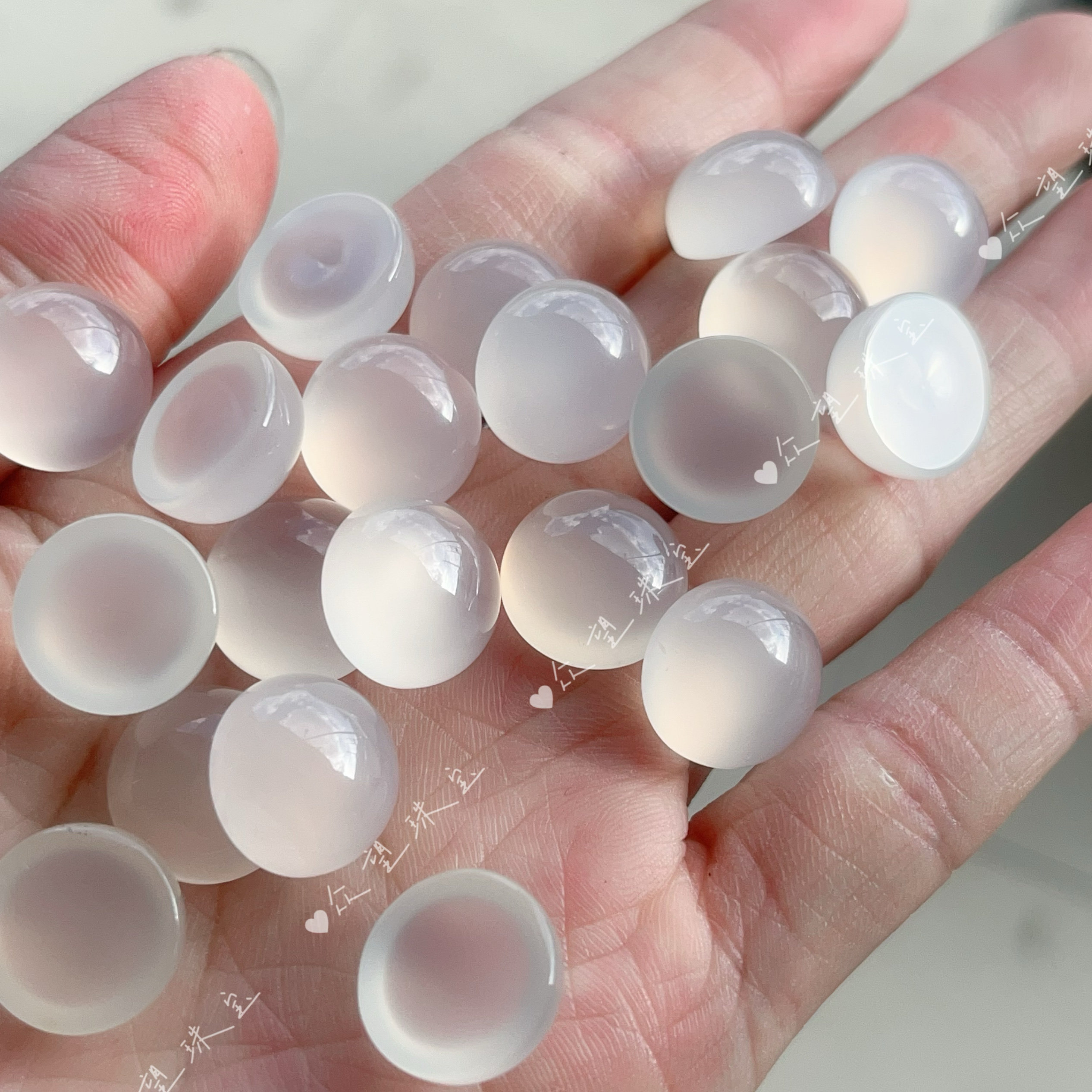 📚 天然白玛瑙半圆形平底戒面 无孔镶嵌diy饰品配件多宝发簪饰品花丝
