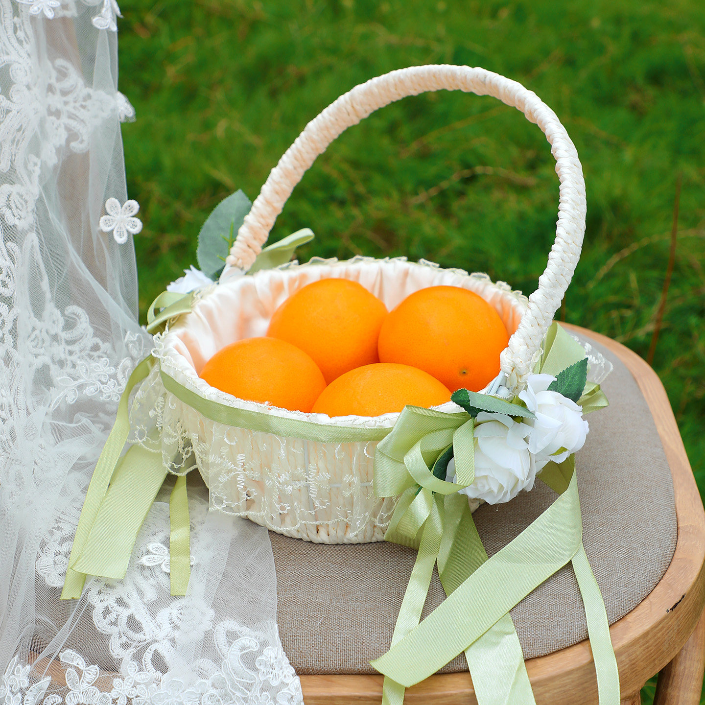 📚 田园风藤编蕾丝花篮结婚庆花童撒花瓣手提篮子送月子礼蕾丝花篮