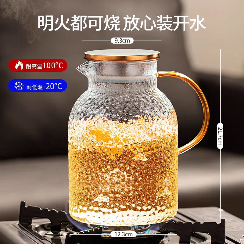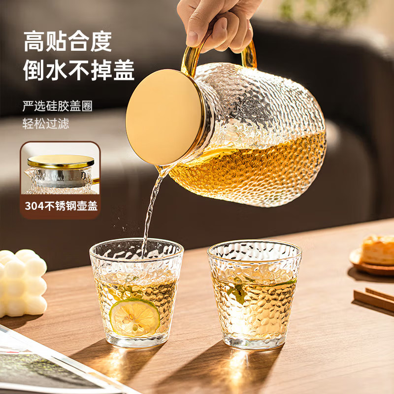 📚 冷水壶家用凉水壶大容量泡茶壶耐高温玻璃水壶套装白开水杯果汁壶