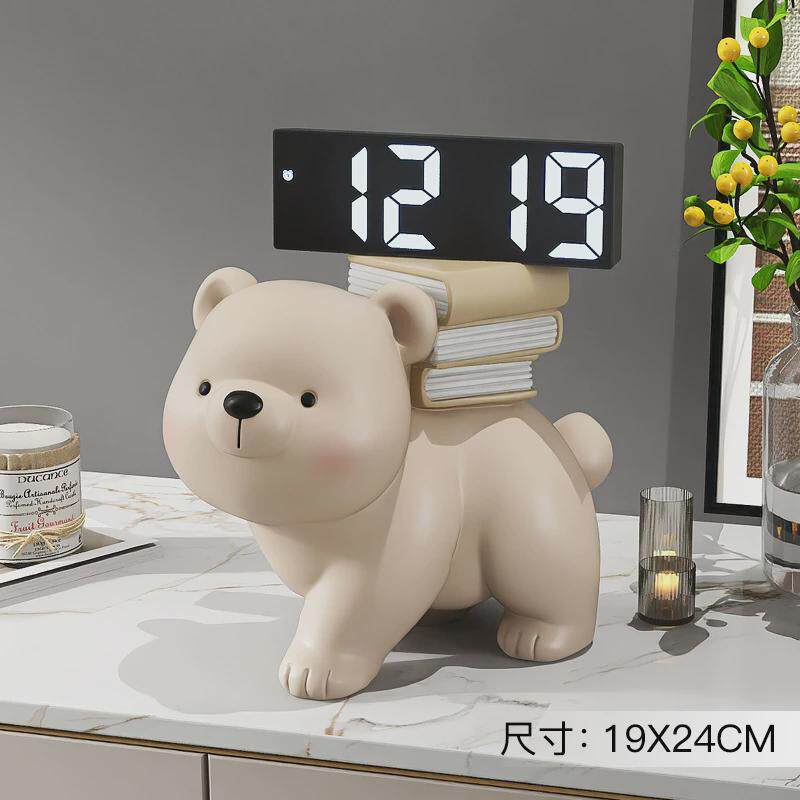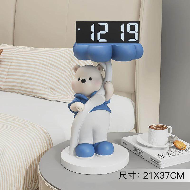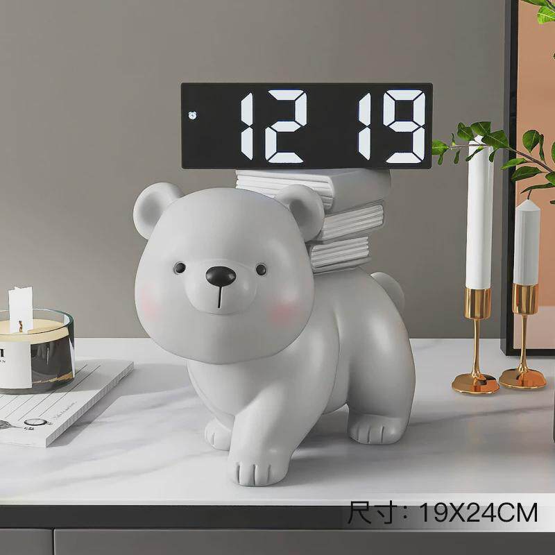 📚 创意熊摆件酒柜电子时钟轻奢客厅电视柜数字家居装饰品床头柜摆台