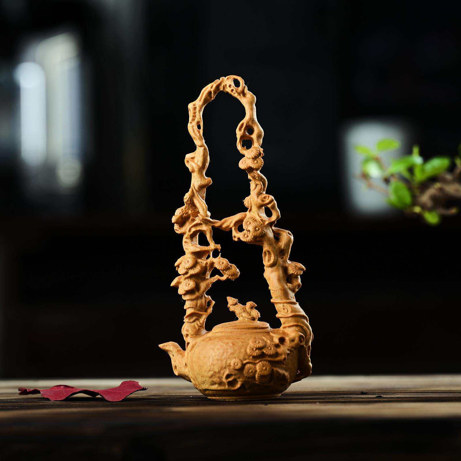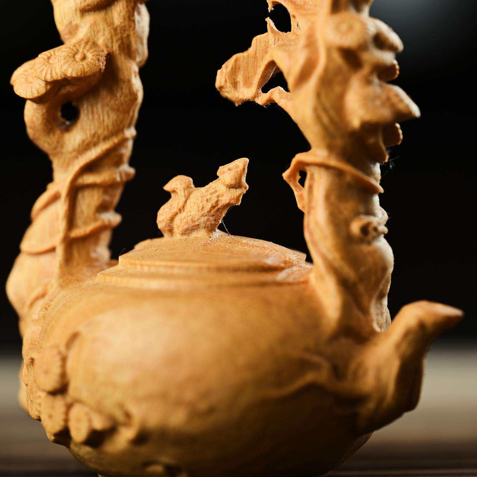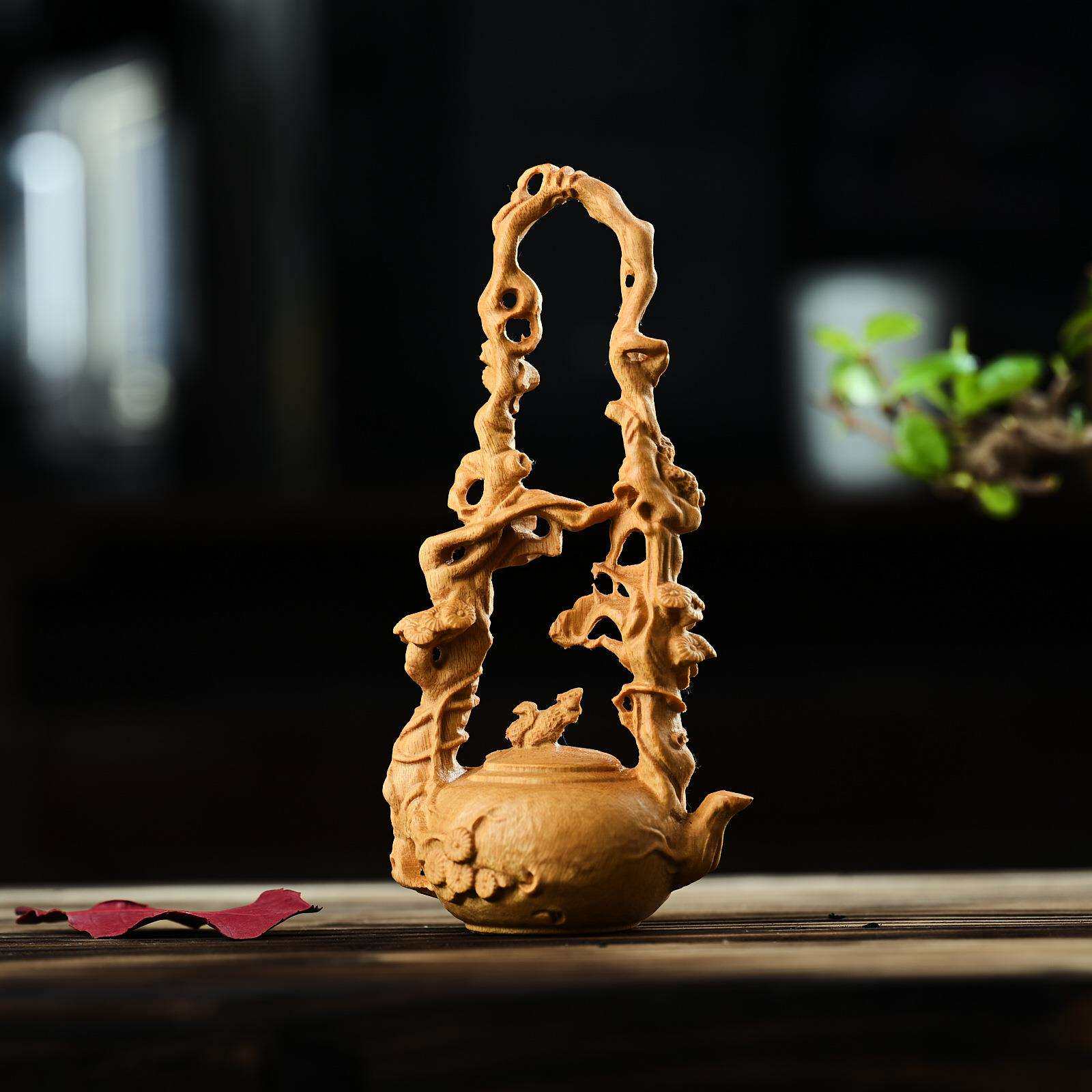 📚 黄金檀提梁壶实木雕刻摆件木质茶壶客厅书桌装饰品送礼收藏把把壶
