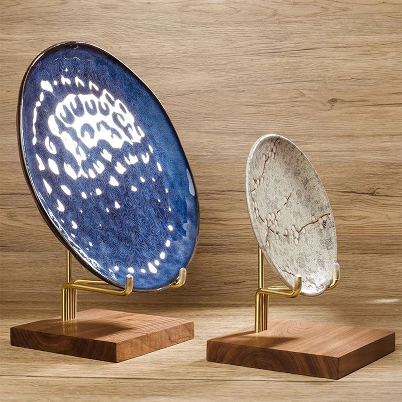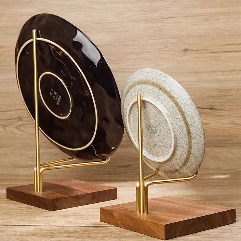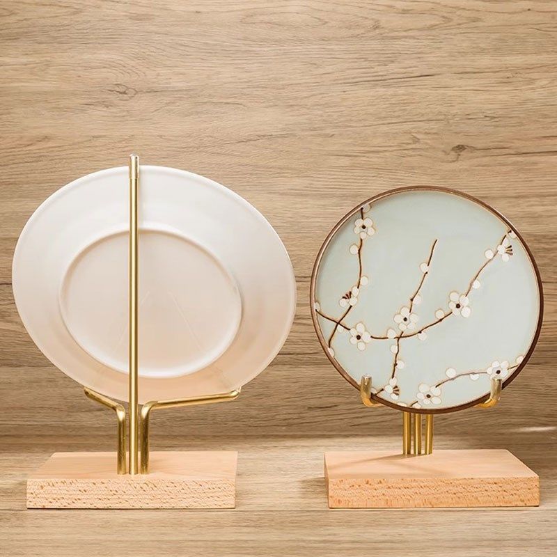 📚 盘子展示支架托实木牌茶饼瓷盘器观赏盏碟摆件装饰黑胶唱片架子