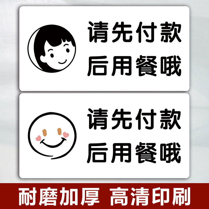 📚 请先付款再就餐提示牌请先买单付钱再用餐标识牌贴纸餐厅饭店餐饮先买单后用餐标语告示牌广告牌亚克力标示贴
