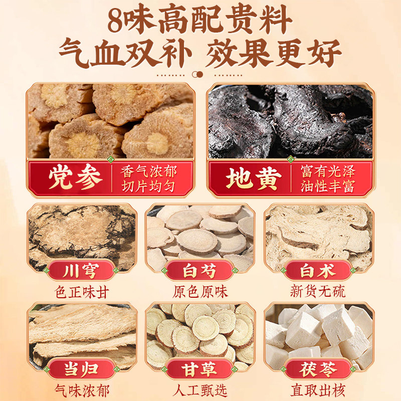 🎁首先,这款八珍汤中药材包的材料真的超级丰富,包含了桃红四物汤等传统中药材,它们能够有效地补气血,对于气血不足的朋友们来说,真的是太友好了!