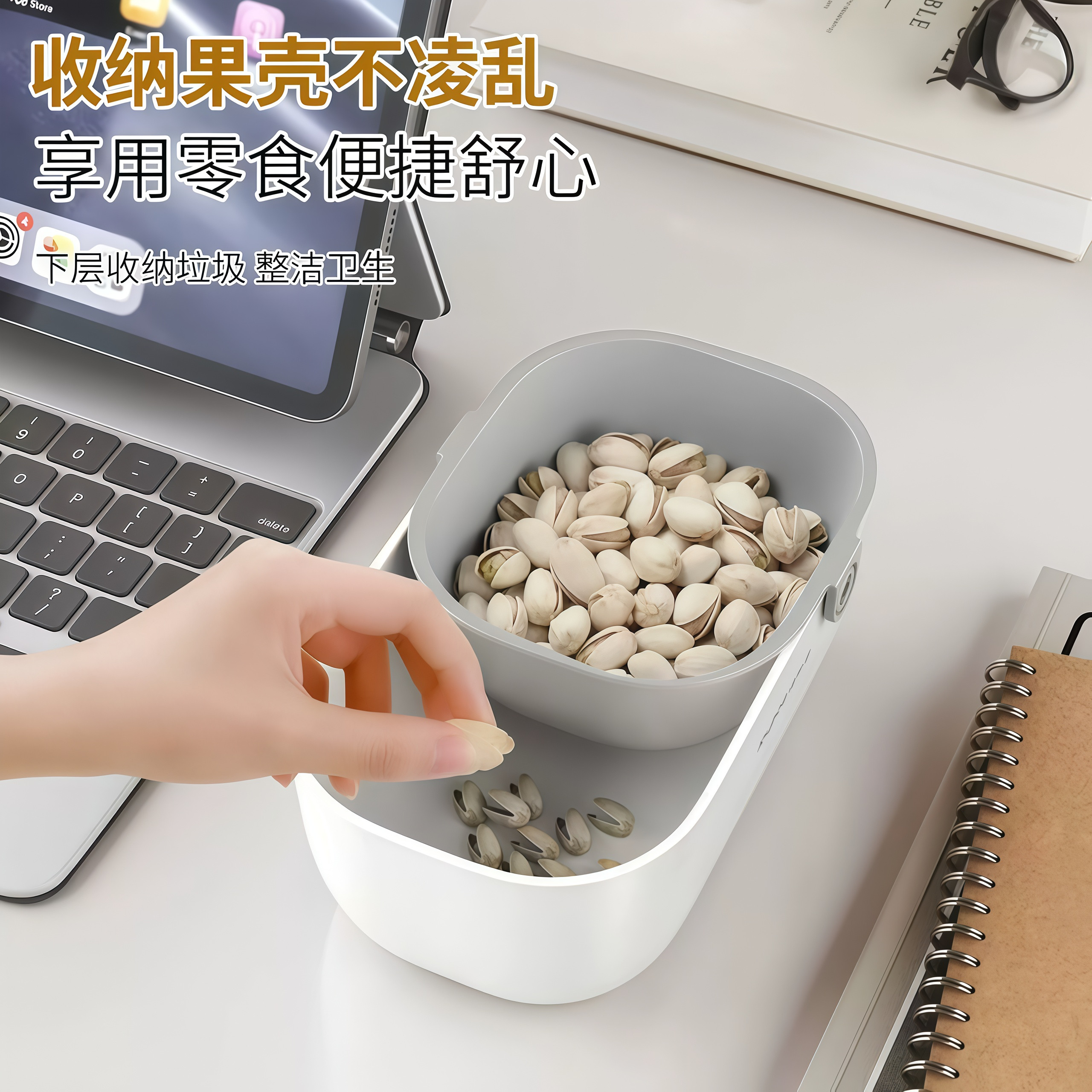 📚 家用瓜子盒嗑瓜子神器水果盘收纳筐客厅零食干果盘双层沥水收纳盒