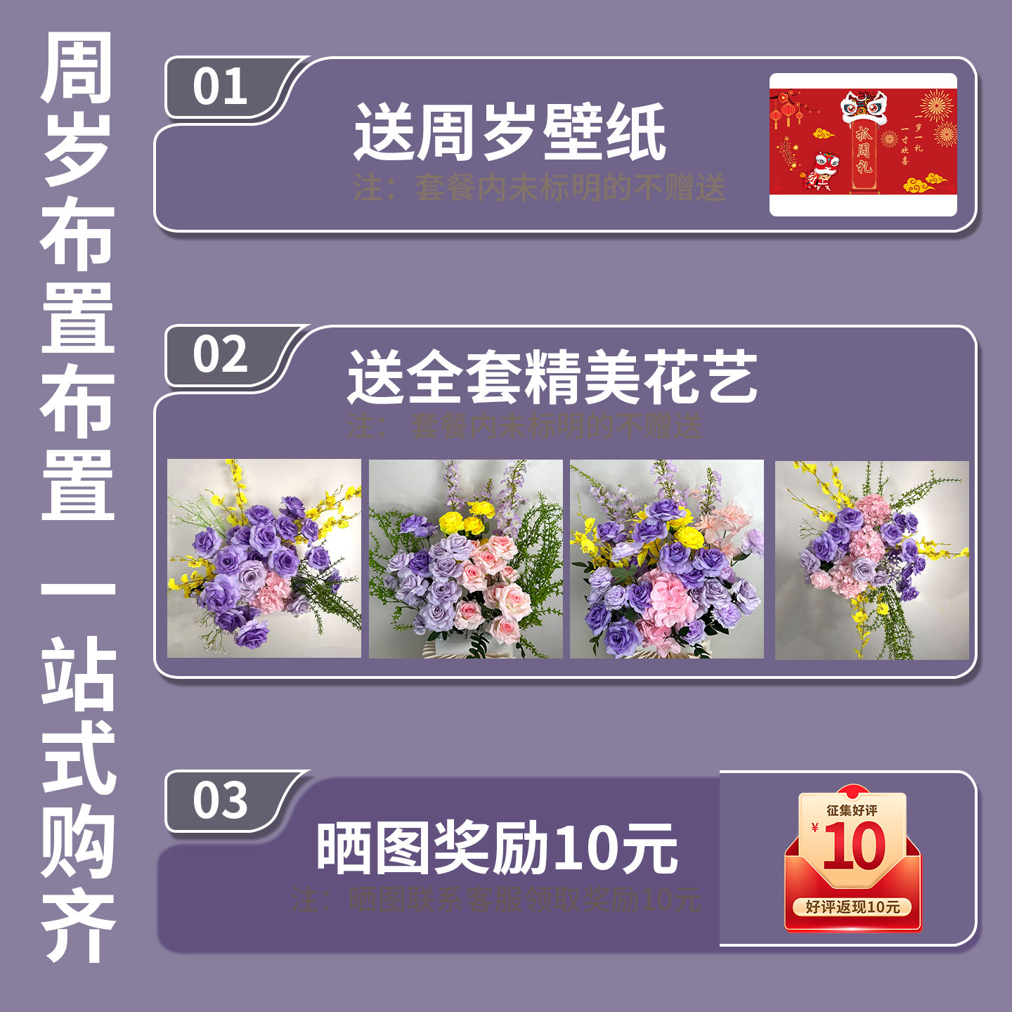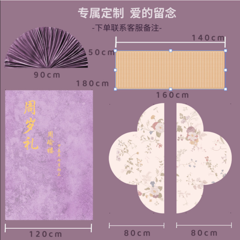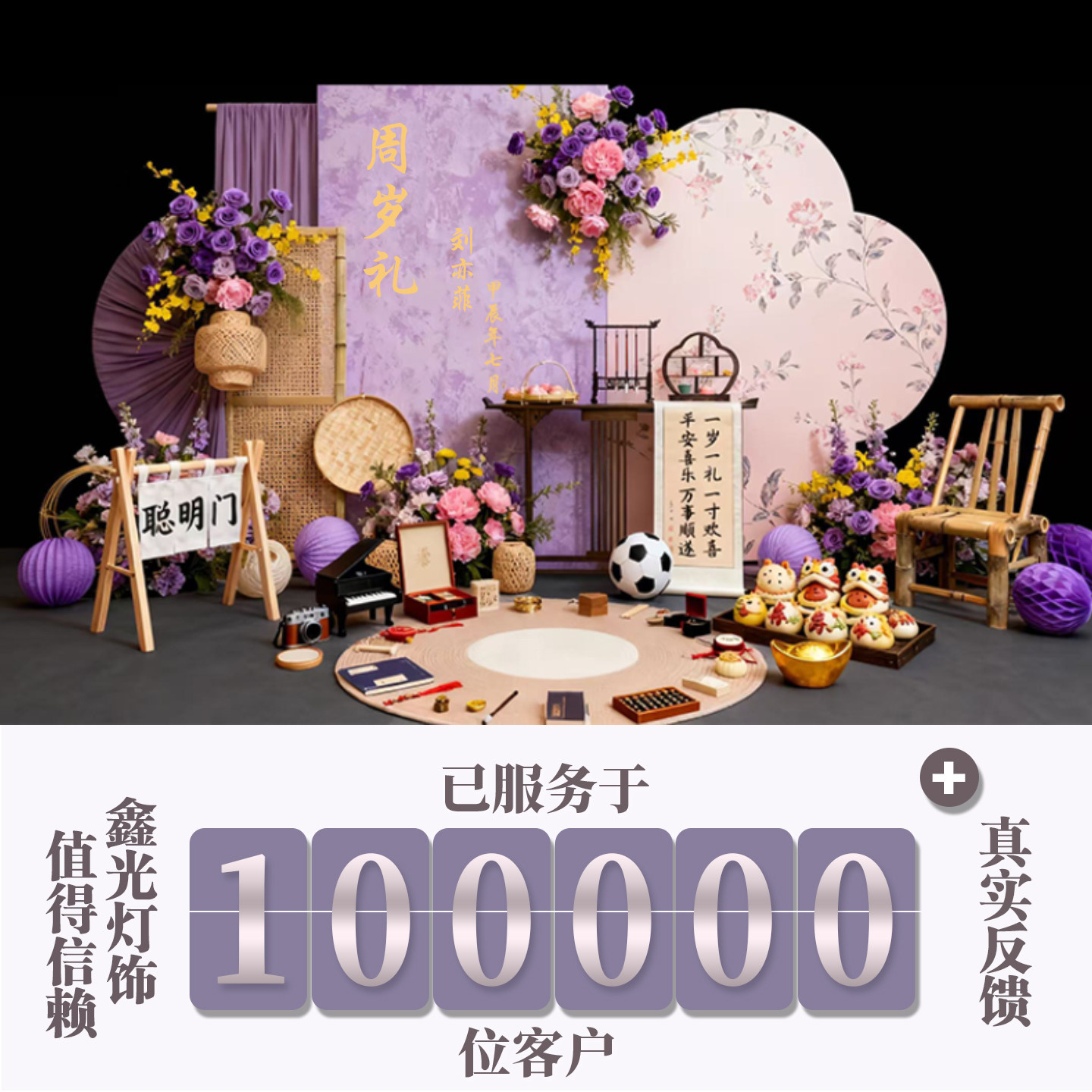 📚 周岁生日布置新中式抓周礼宴宝宝装饰场景男孩女孩背景墙紫色kt板