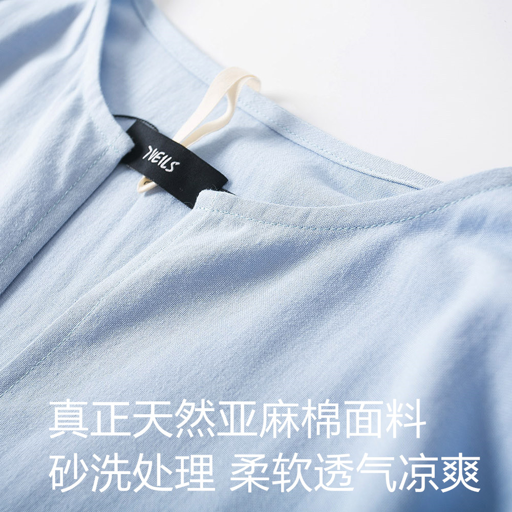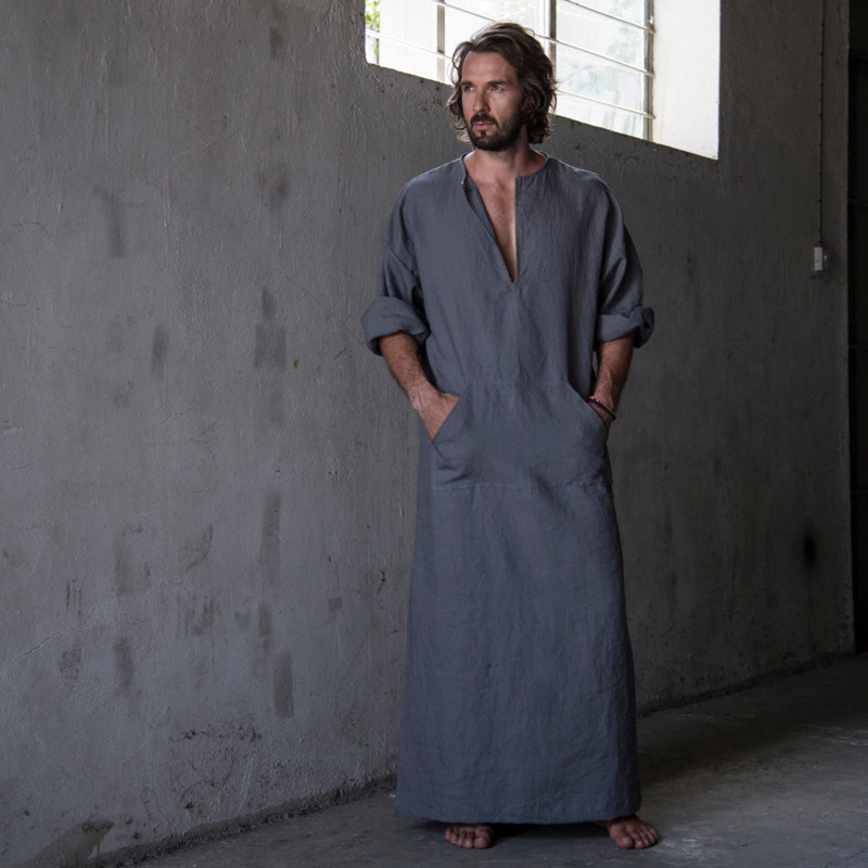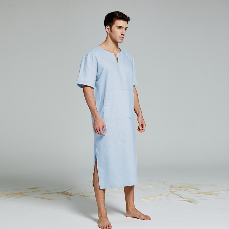 📚 夏薄款棉麻睡袍男文艺复古长袍睡裙浴袍家居服男宽松大码麻棉睡衣