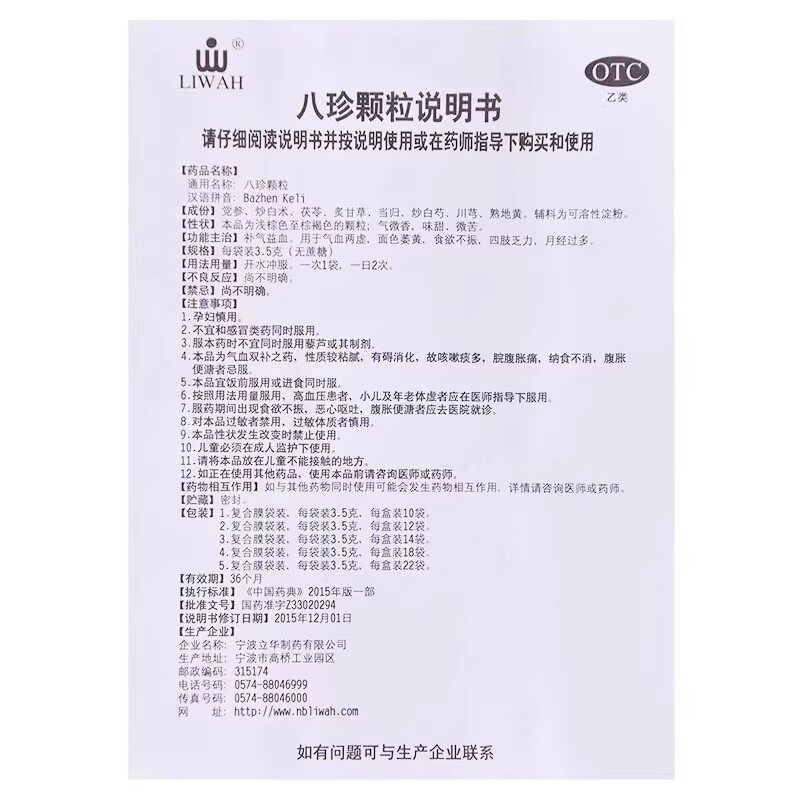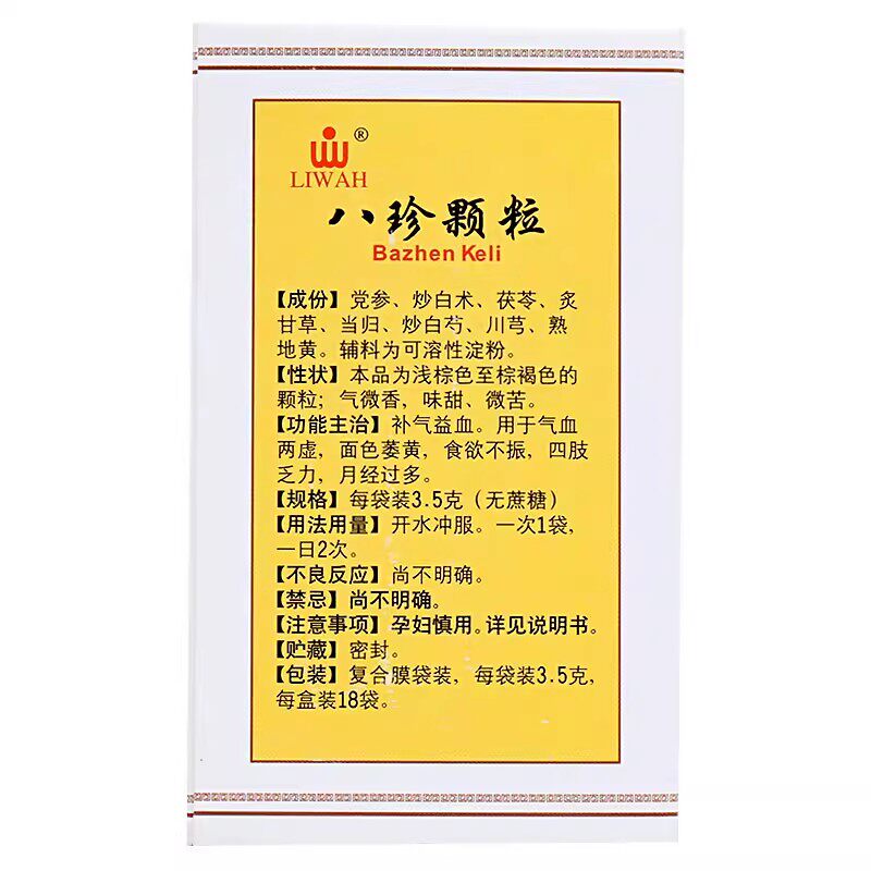 📚 LIWAH八珍颗粒18袋无蔗糖气血两虚乏力月经过多立华国药准字OTC