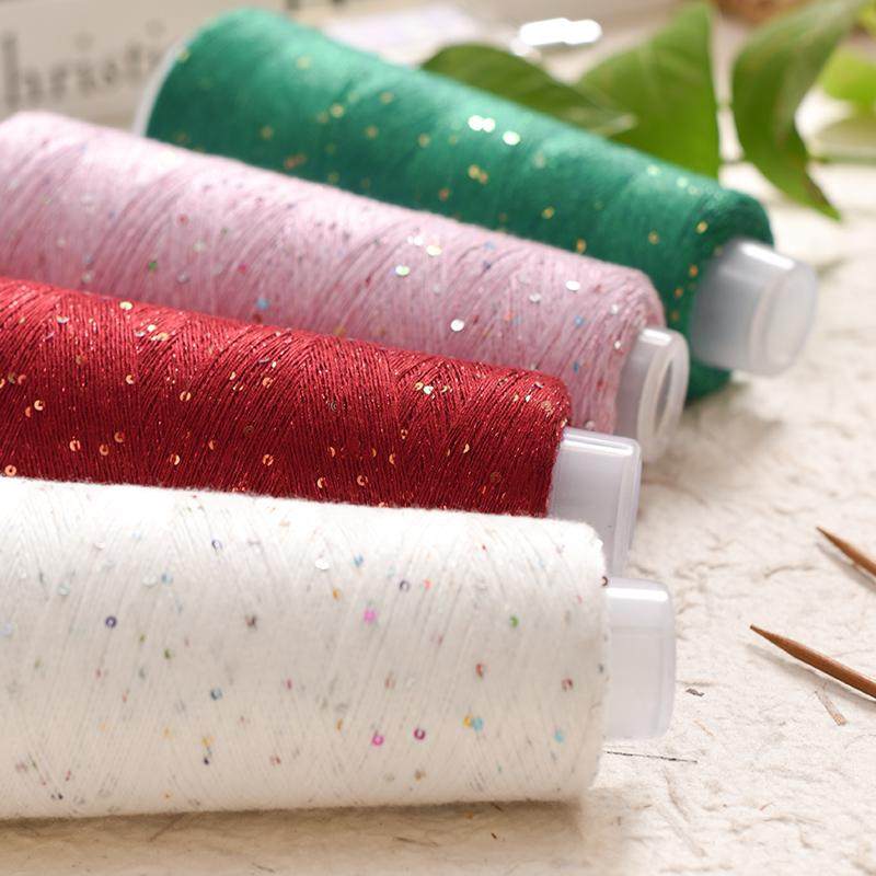 📚 天丝炫彩珠片亮片线配线真丝毛线钩织毛衣diy手工编织中粗线材料