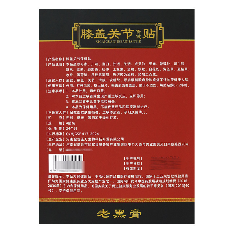 📚 金古圣方膝盖关节保健贴颈肩腰腿背关节膝盖白芷骨碎补全蝎刺五加