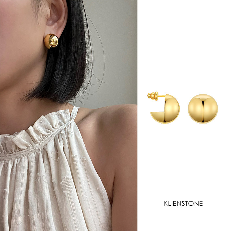 📚 KLIENSTONE新款极简金色银色圆形耳钉开口笑纯银针镀金全新现货耳