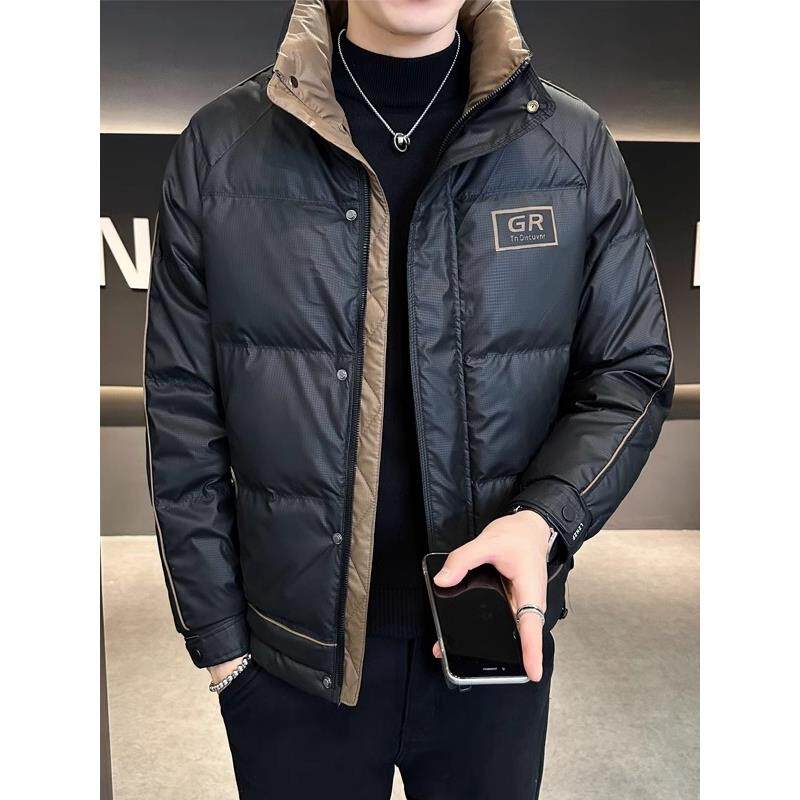 📚 男士羽绒服冬季新款潮牌帅气拼色立领高端加厚保暖白鸭绒冬装外套
