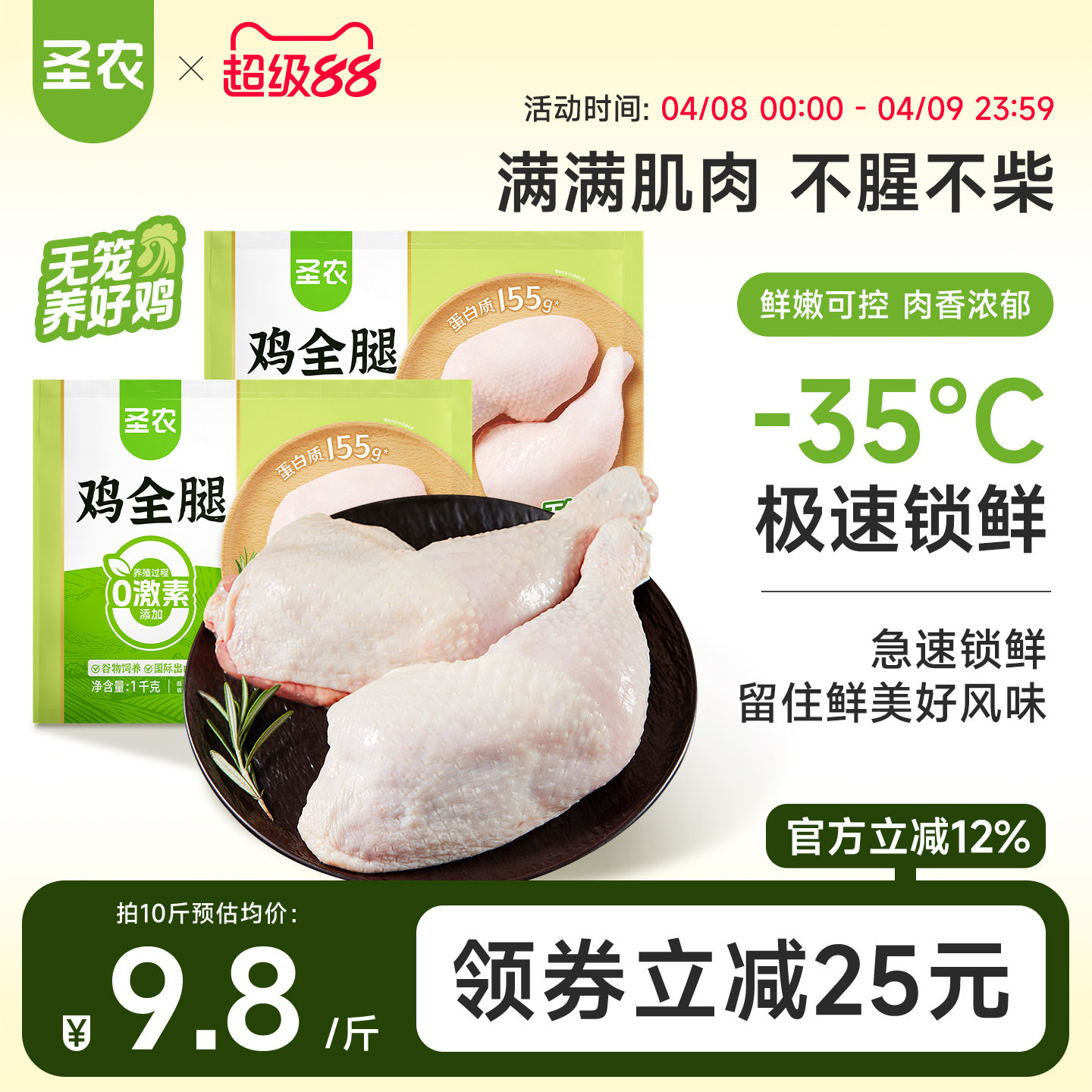 📚 圣农鸡全腿手枪腿新鲜饱满养殖0激素冷冻半成品烧烤生鲜鸡肉批发