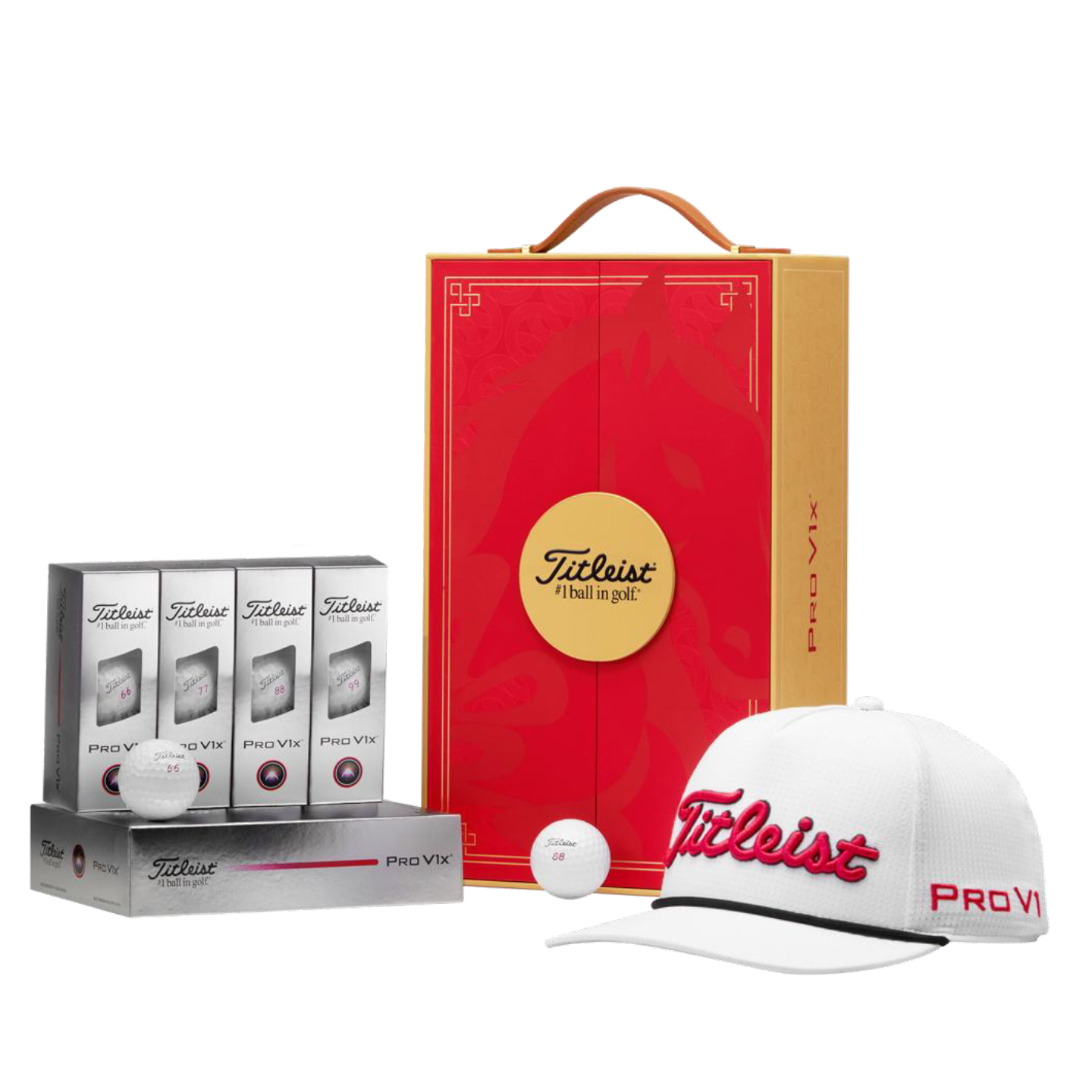 📚 Titleist泰特利斯高尔夫球礼盒装PRO V1 V1X马年限量版高尔夫球帽