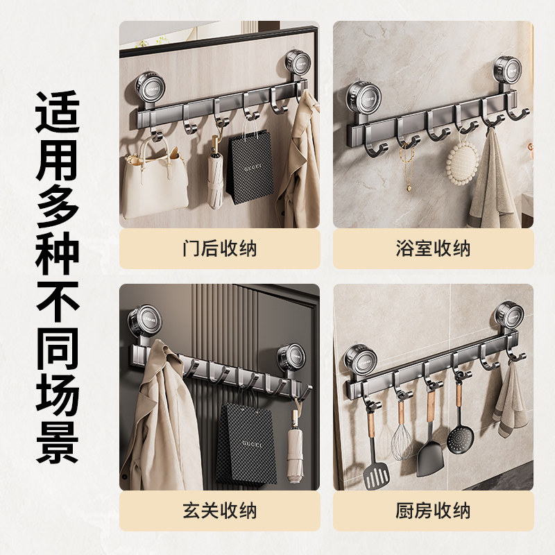 📚 吸盘毛巾挂架浴室卫生间排钩免打孔壁挂式可拆卸玄关入户门后挂钩