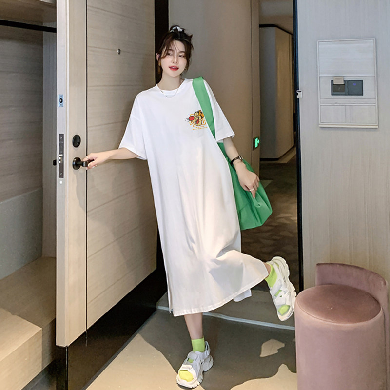 📚 胖mm大码女装宽松连衣裙女短袖中长款t恤裙过膝懒人长裙显瘦夏季T