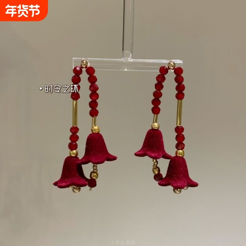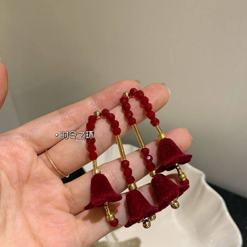📚 时令之环|赤金铃兰 红色丝绒花朵独特绝美2025耳环女秋冬耳饰