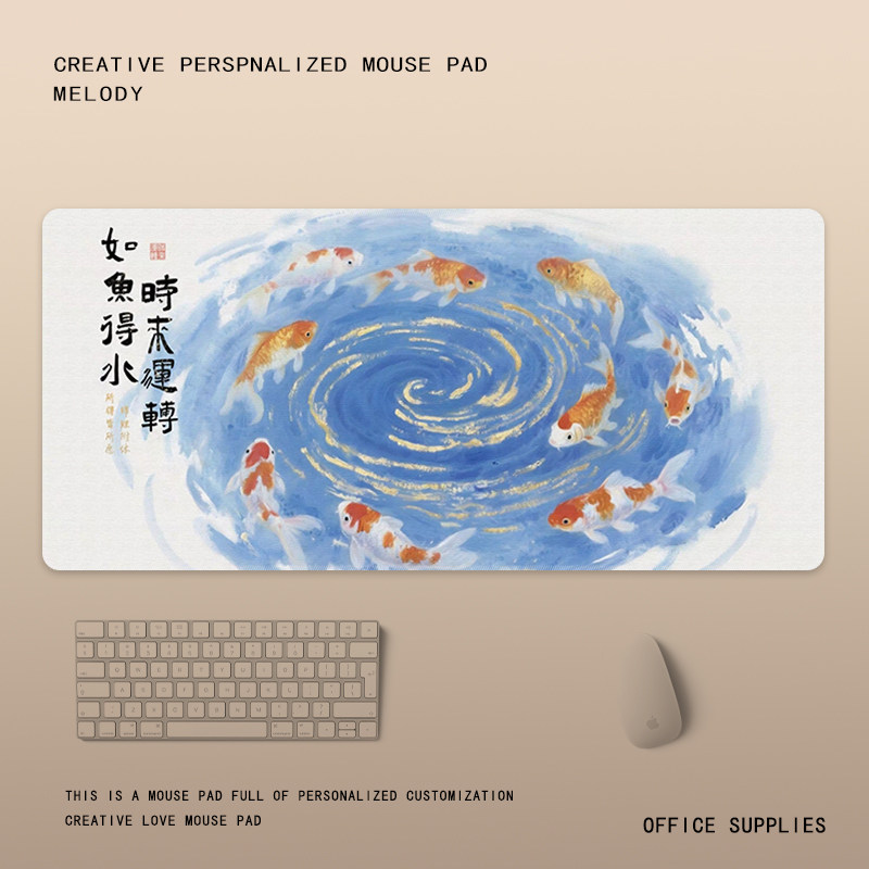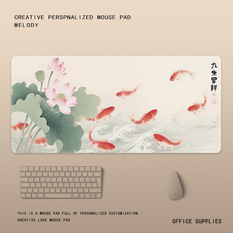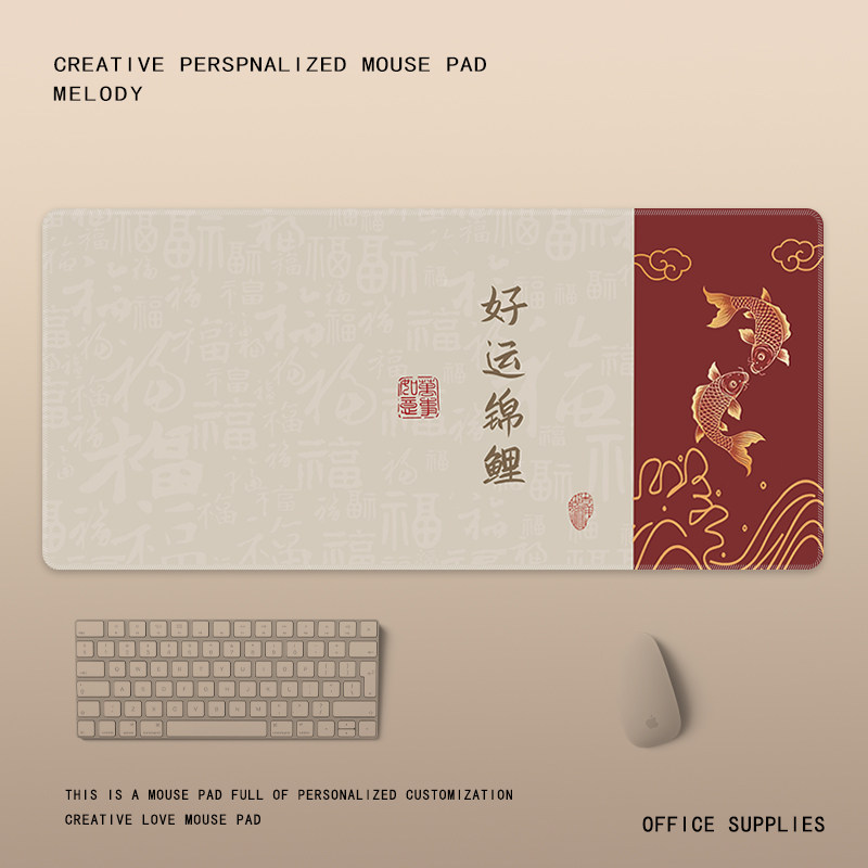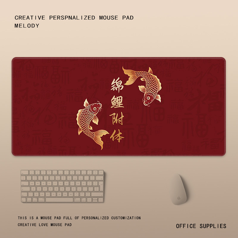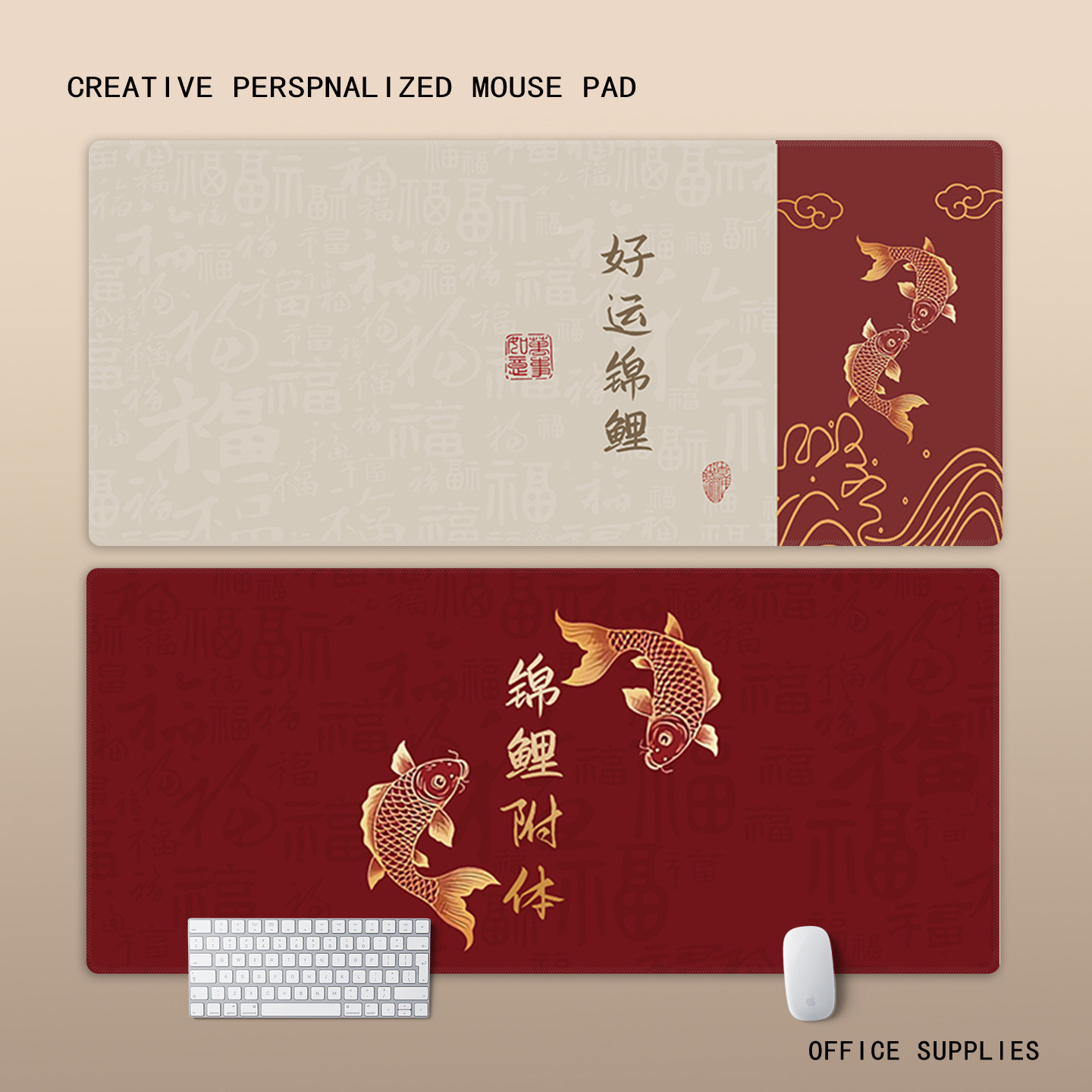 📚 锦鲤附体红色鼠标垫超大号办公室桌垫国潮风高级感笔记本垫女定制