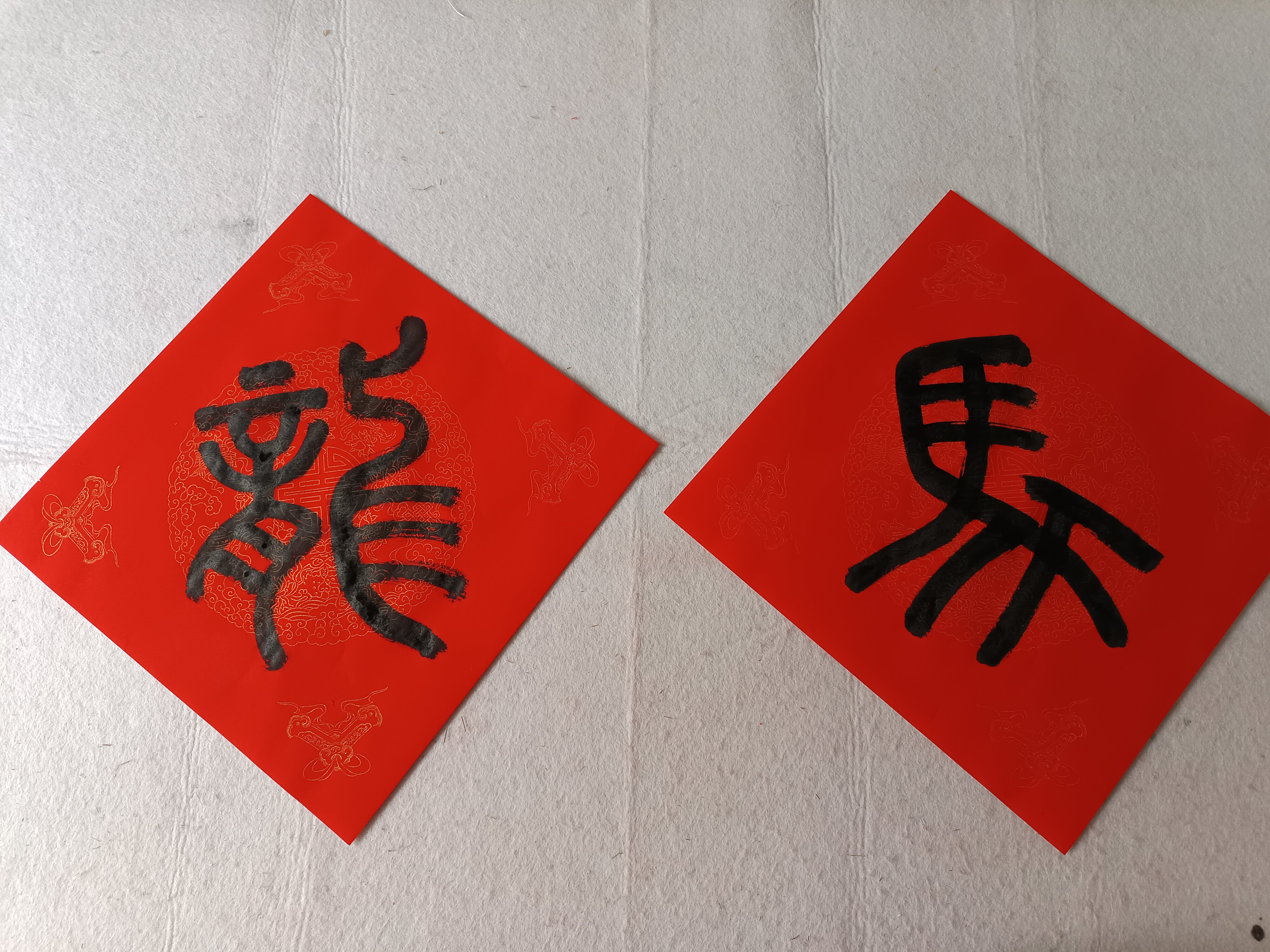 📚 门幅斗方篆书体马字龙字五云山人亲手写书法真迹万年红对联彩宣纸