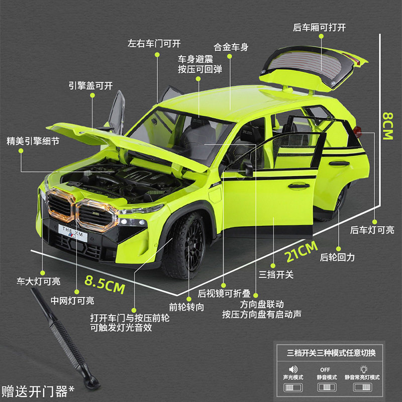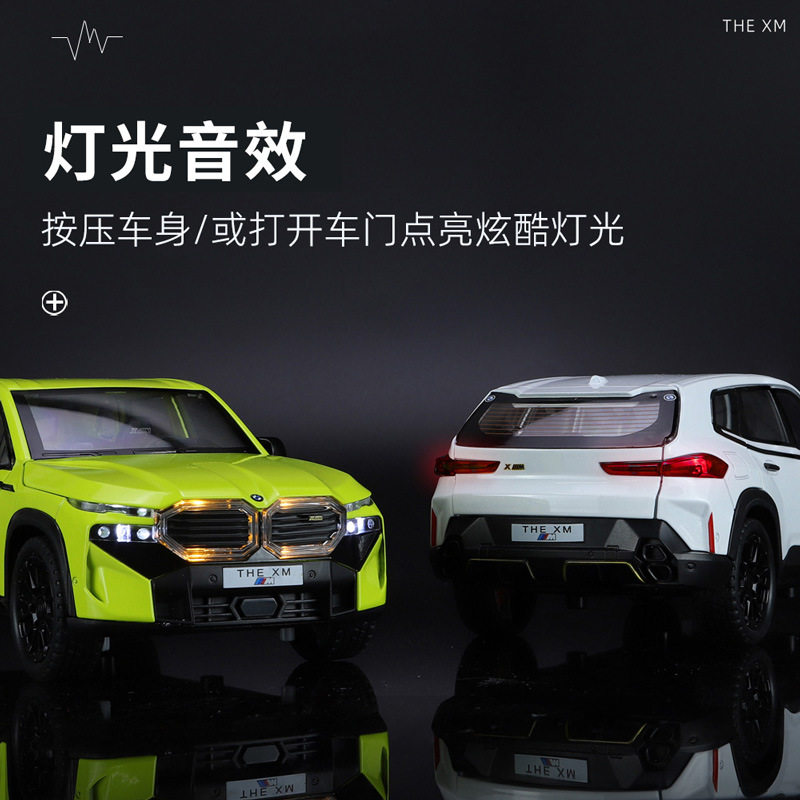 📚 新款 1:24 宝*XM仿真汽车模型转向开门合金声光玩具三档开关