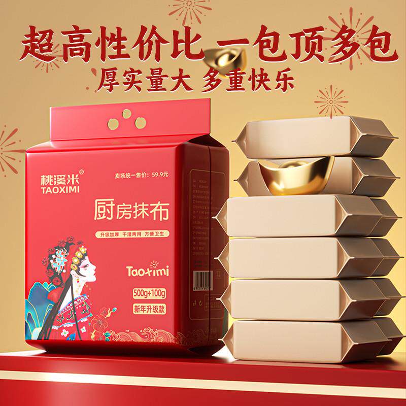 📚 2026新款桃溪米新年新春款国风厨房抹布加大加厚干湿两用一次性懒
