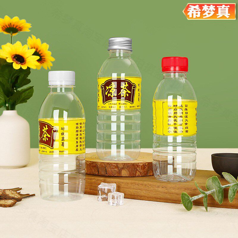 📚 00凉茶瓶塑料一次性带盖带标签商用打凉茶