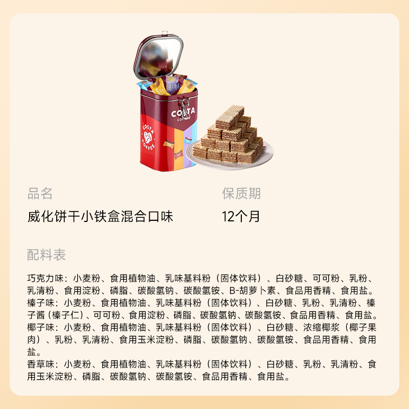 📚 Costa/咖世家巧克力威化饼干榛果休闲零食春节年货礼盒送礼伴手礼