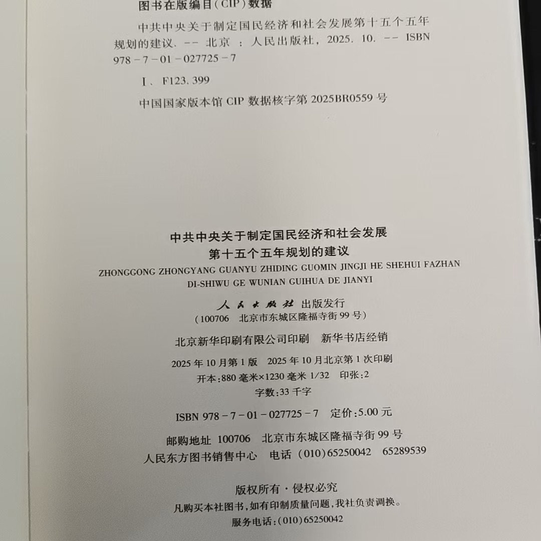📚 2025党的二十届四中全会《建议》单行本中共中央关于制定国民经济和社会发展第十五个五年规划的建议全文人民出版社 9787010277257