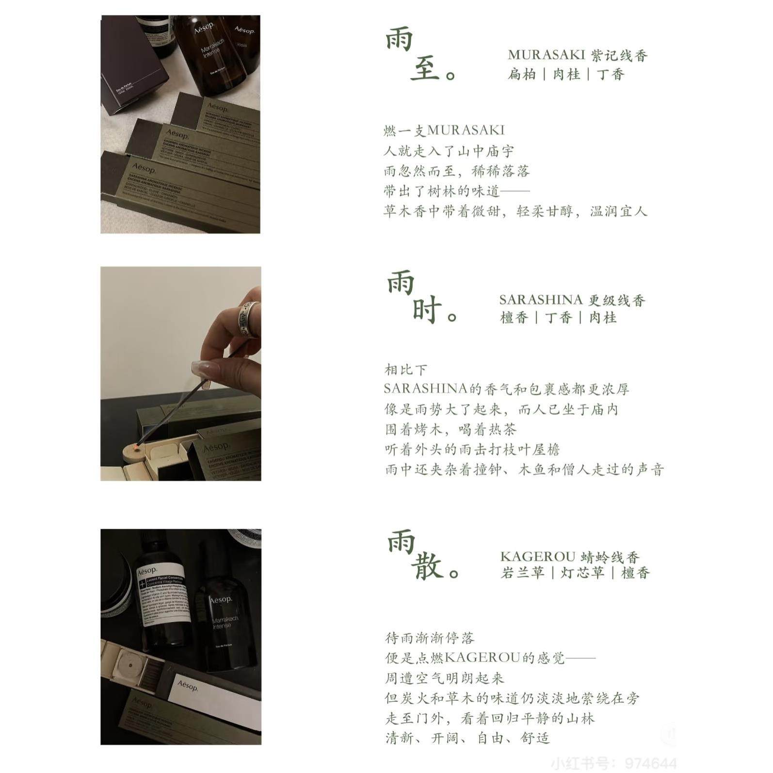📚 韩国百货采购现货Aesop伊索线香紫记/更级/蜻蛉 檀香安神一盒33根