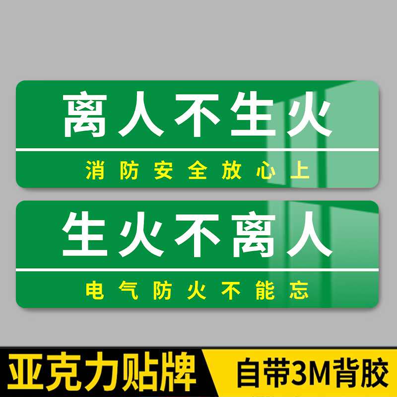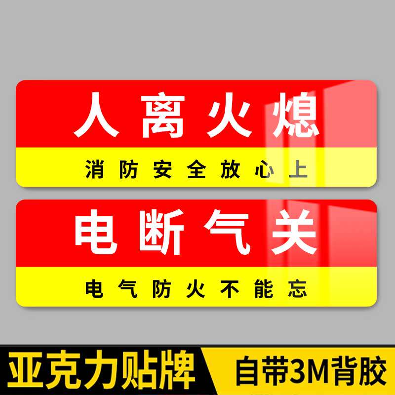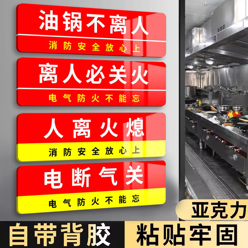📚 4d厨房管理标识牌人离断电提示牌油锅生火不离人必关火警示牌餐饮酒店食堂厨房离人火熄电断气关4D标语牌定制
